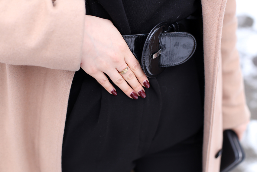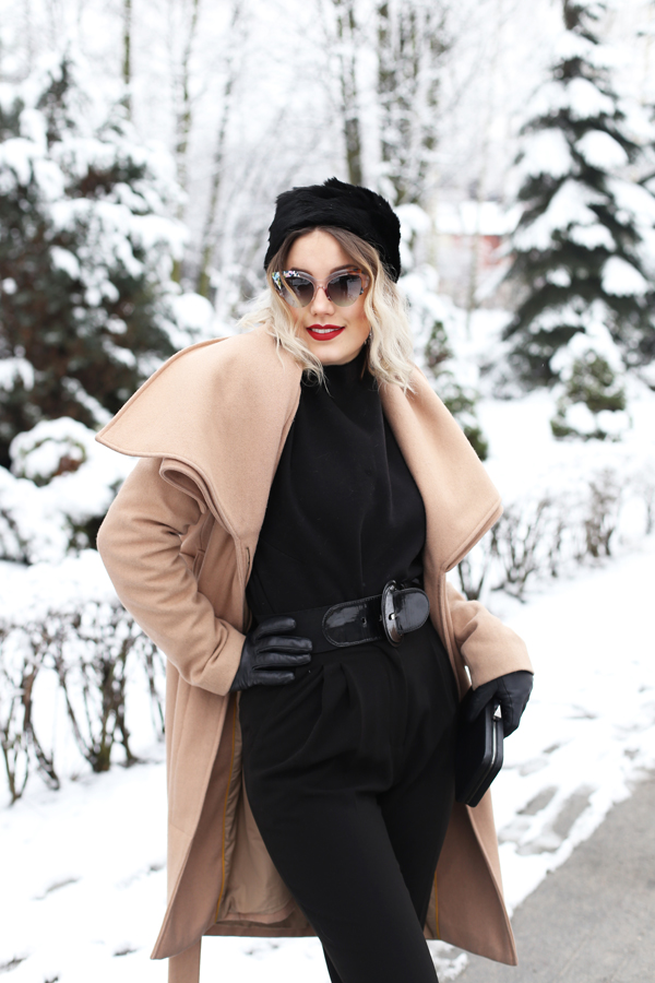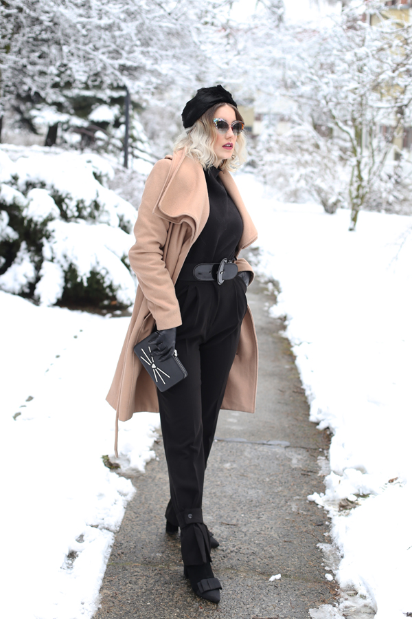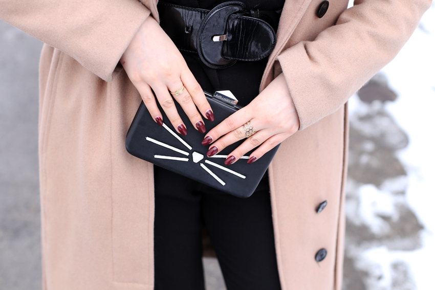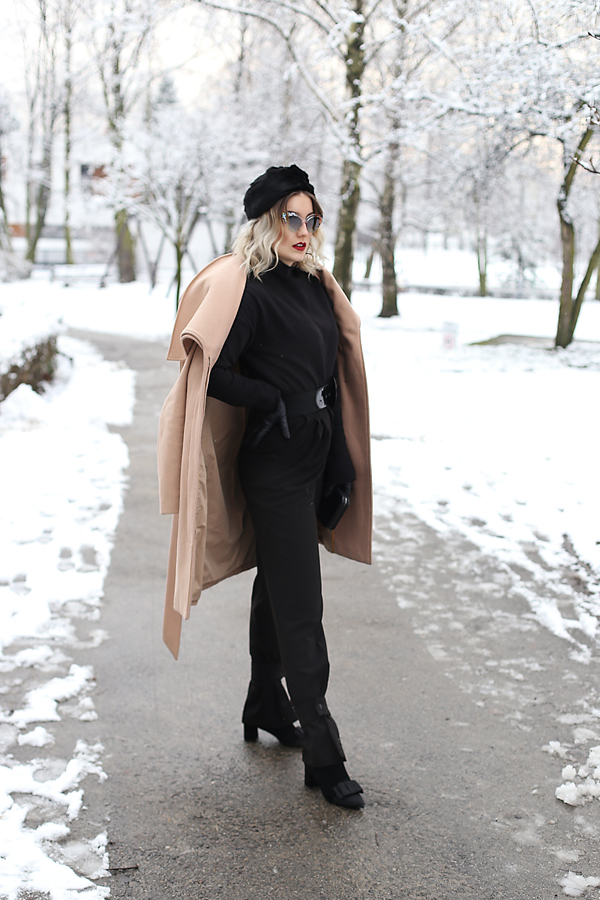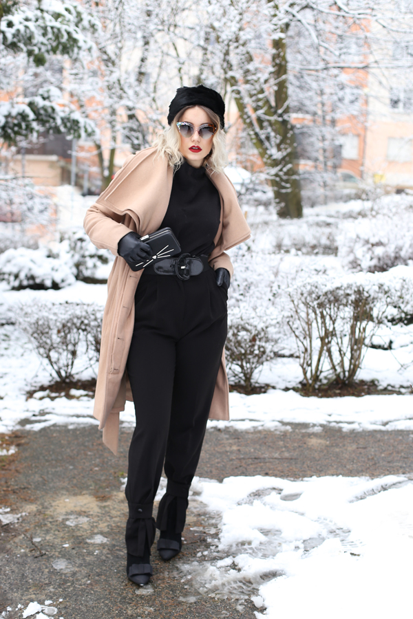 Spodnie: H&M o Golf: ZARA o Płaszcz: MINT&BERRY o Kopertówka: KARL LAGERFELD o Beret: VINTAGE o Botki: TUTAJ o Pazury: TUTAJ