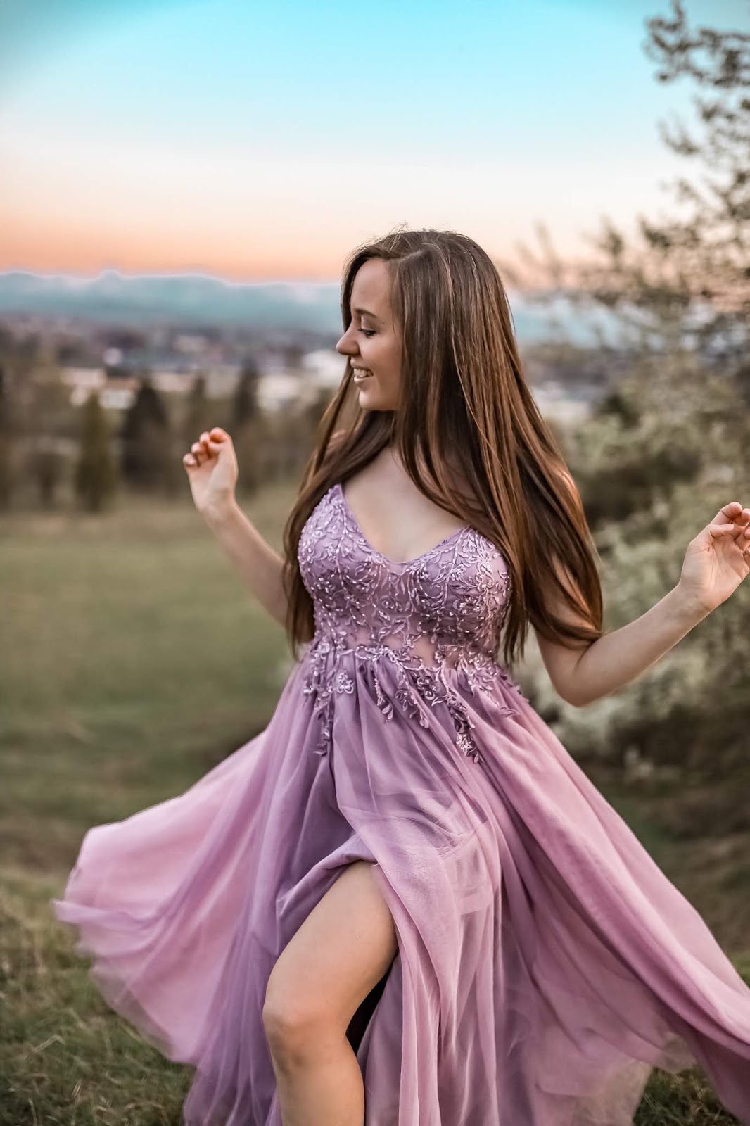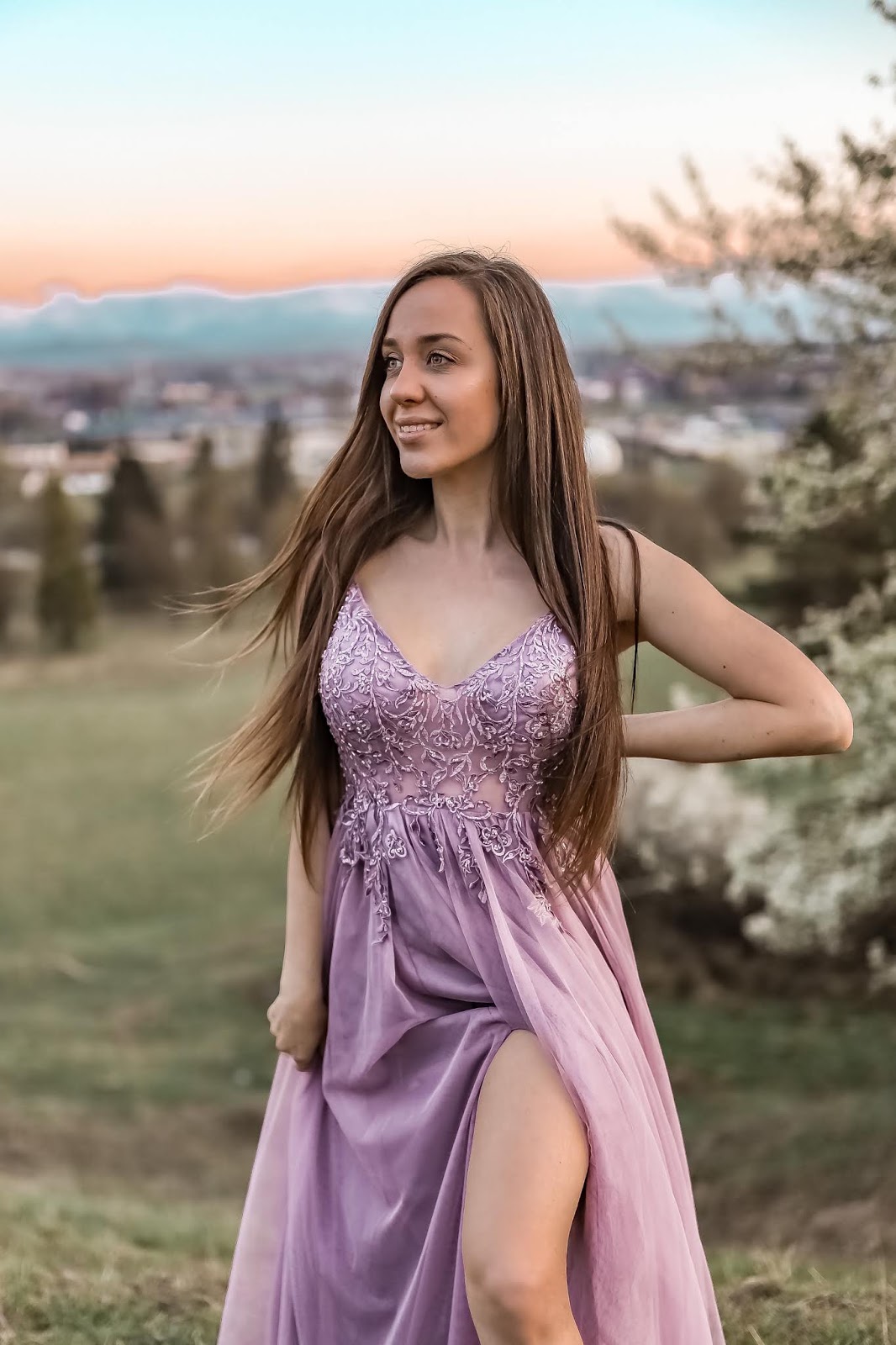 ROMANTYCZNA LILIOWA SUKNIA