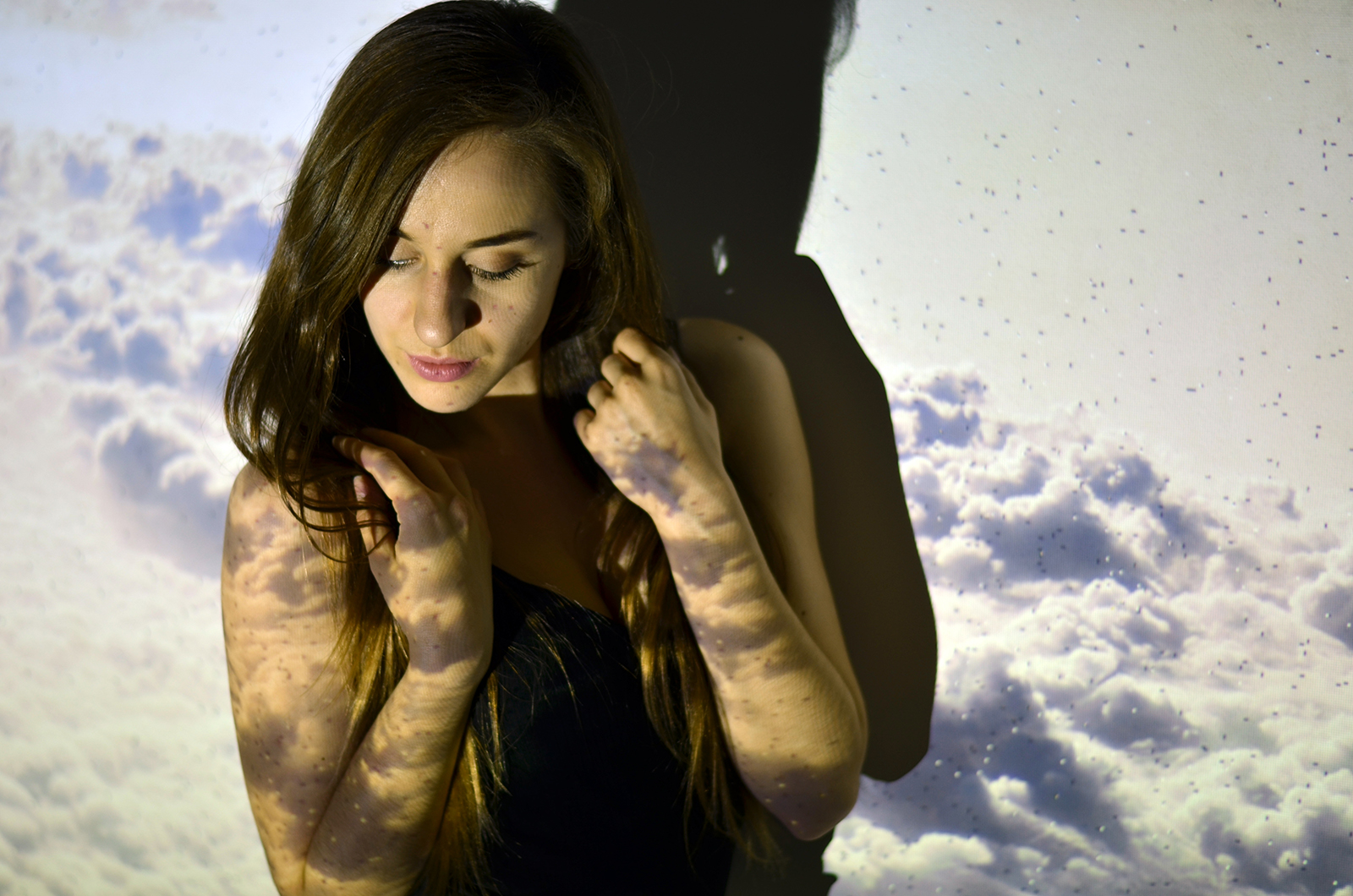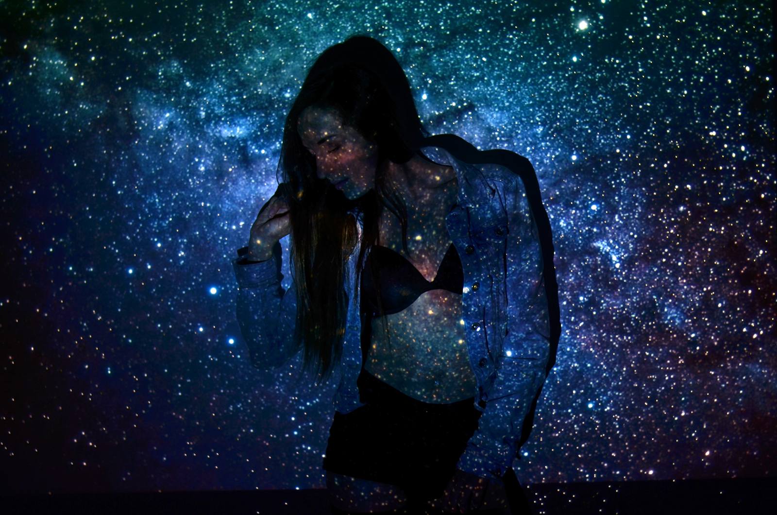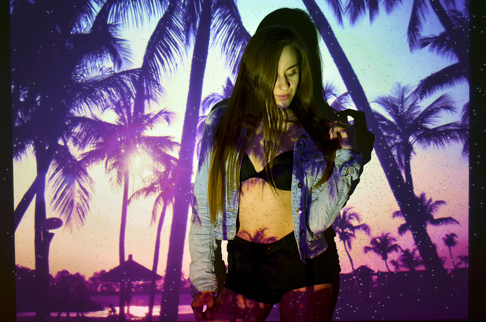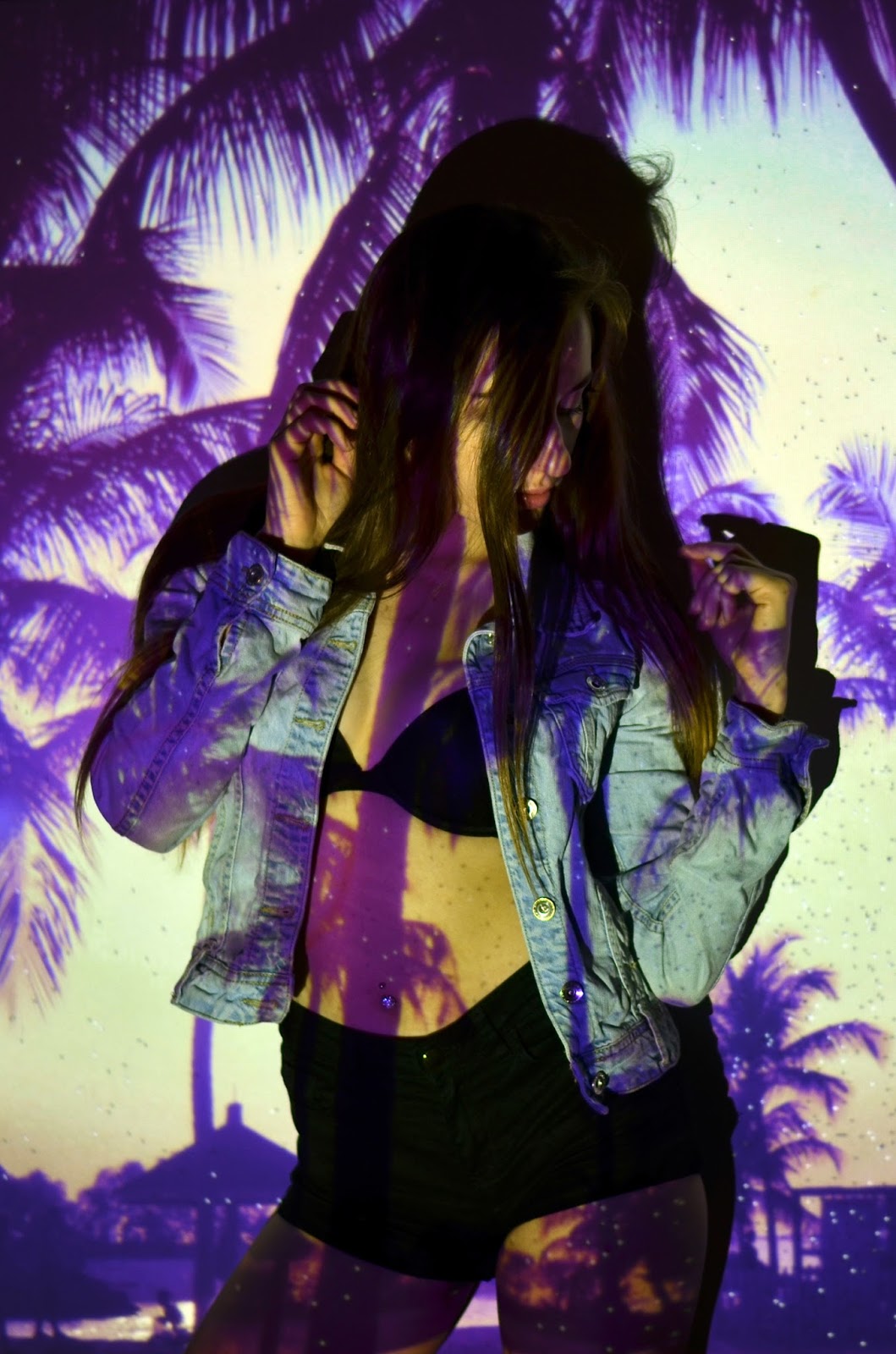 Zobacz oryginał pt., 20/05/2016 - 15:00Witajcie Kochani:) Mam dla Was kolejną sesję nieco bardziej urozmaiconą. Od kiedy 4 lata temu wyszedł teledysk Rihanny We Found Love - chciałam zrobić zdjęcia z użyciem projektora. W tym tygodniu udało się to zrealizować. 1 w nocy jest bardzo ciekawą godziną do fotografowania, stąd może być widoczne lekkie już zmęczenie po całym dniu;) Co mi się podoba, to fakt, że projektor jest nieco zepsuty. Rzuca pełno białych kropek na tło, ale myślę, że efekt jest dzięki temu jeszcze fajniejszy i bardziej oryginalny. Wybór motywów był w moim wydaniu oczywisty: kwiaty, palmy, galaxy, niebo. Dodatkowo padło również na ulubioną chłodną kolorystykę. Czy się udało, to już ocenicie Wy:)