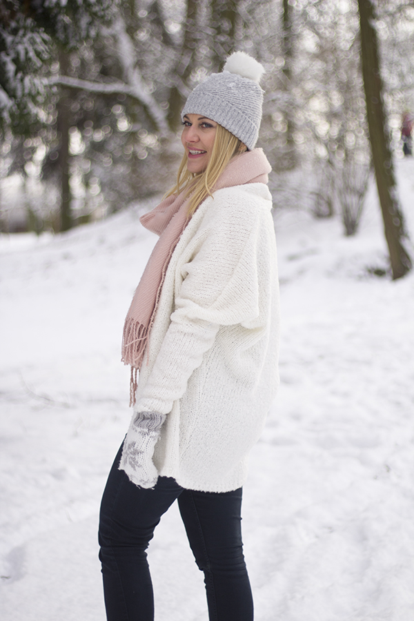 Dzisiejsza stylizacja to klasyka kolorów: czerni, szarości i bieli, przełamana odrobiną pudrowego różu. Na długi spacer niezbędne są wygodne trapery. Swoje kupiłam w ubiegłym sezonie ale znalazłam podobne dla fanek pudrowego różu. Pod gruby sweter założyłam body. To niezwykle kobieca, wygodna i praktyczna część damskiej garderoby. Dzięki zapięciu w kroku nie musimy się martwić, że bluzka wysunie się ze spodni, czy spódnicy odkrywając nasze ciało. Body idealnie pasują do krótkich spodenek, dżinsów, szerokich spodni i rozkloszowanych spódnic. Szeroki wybór kolorów, krojów i form sprawią, że idealne body znajdziemy na co dzień, jak i od święta.