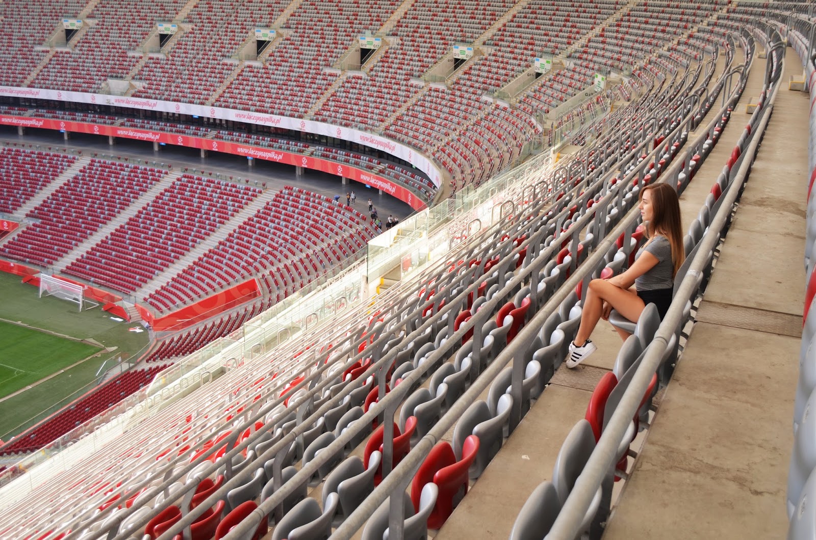 Zobacz oryginał pon., 07/09/2015 - 19:45Witajcie:) Wróciłam właśnie z pobytu w Warszawie i mam dla Was mnóstwo zdjęć. W ramach Warszawa jest Trendy odbyło się w tym czasie mnóstwo świetnych imprez i koncertów, które mogliście oglądać m.in na moim snapie: balaczka. Pierwsza sesja, którą prezentuję zrobiona została na Stadionie Narodowym, na którym dzisiaj odbędzie się mecz Polska-Gibraltar :) Na początek kilka informacji. Został otwarty 29 stycznia 2012 roku, a na trybunach jest aż 58 500 miejsc siedzących! Wybudowany oczywiście przed UEFA Euro 2012;) Cała ta przestrzeń sprawia ogromne wrażenie. przyznam, że dużo większe niż widok na panoramę miasta z Pałacu Kultury. Z zewnątrz wygląda równie spektakularnie. Przejście dookoła niego zajmuję sporo czasu i idzie się dobry kilometr;) Wieczorem natomiast pięknie świeci się w efekcie 3D. W dniu, w którym robiłam zdjęcia czyli 05.09 odbył się tam również pokaz pirotechniczny:) Mój zestaw jest idealny na całodzienne zwiedzanie miasta. Utrzymany w kolorach czerni, bieli i szarości, a przede wszystkim wygodny.