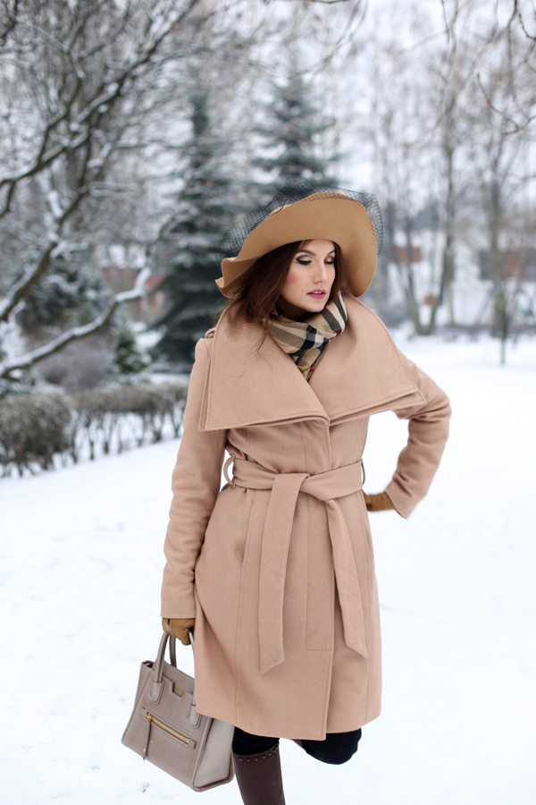Płaszcz: MINT & BERRY o Szal: BURBERRY o Kozaki: TUTAJ o Kapelusz: TUTAJ o Torba: JOOP! o Pazury: TUTAJ