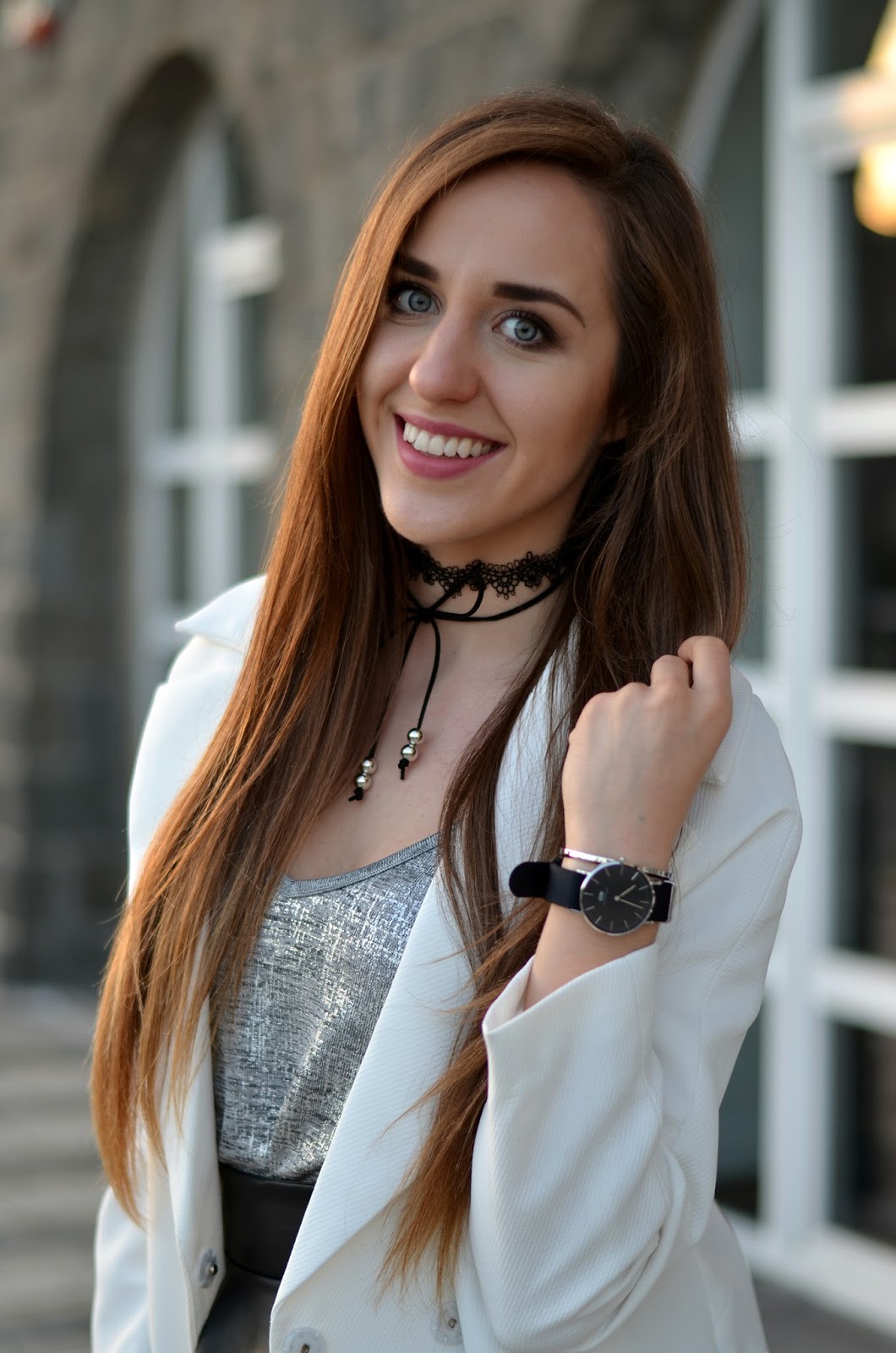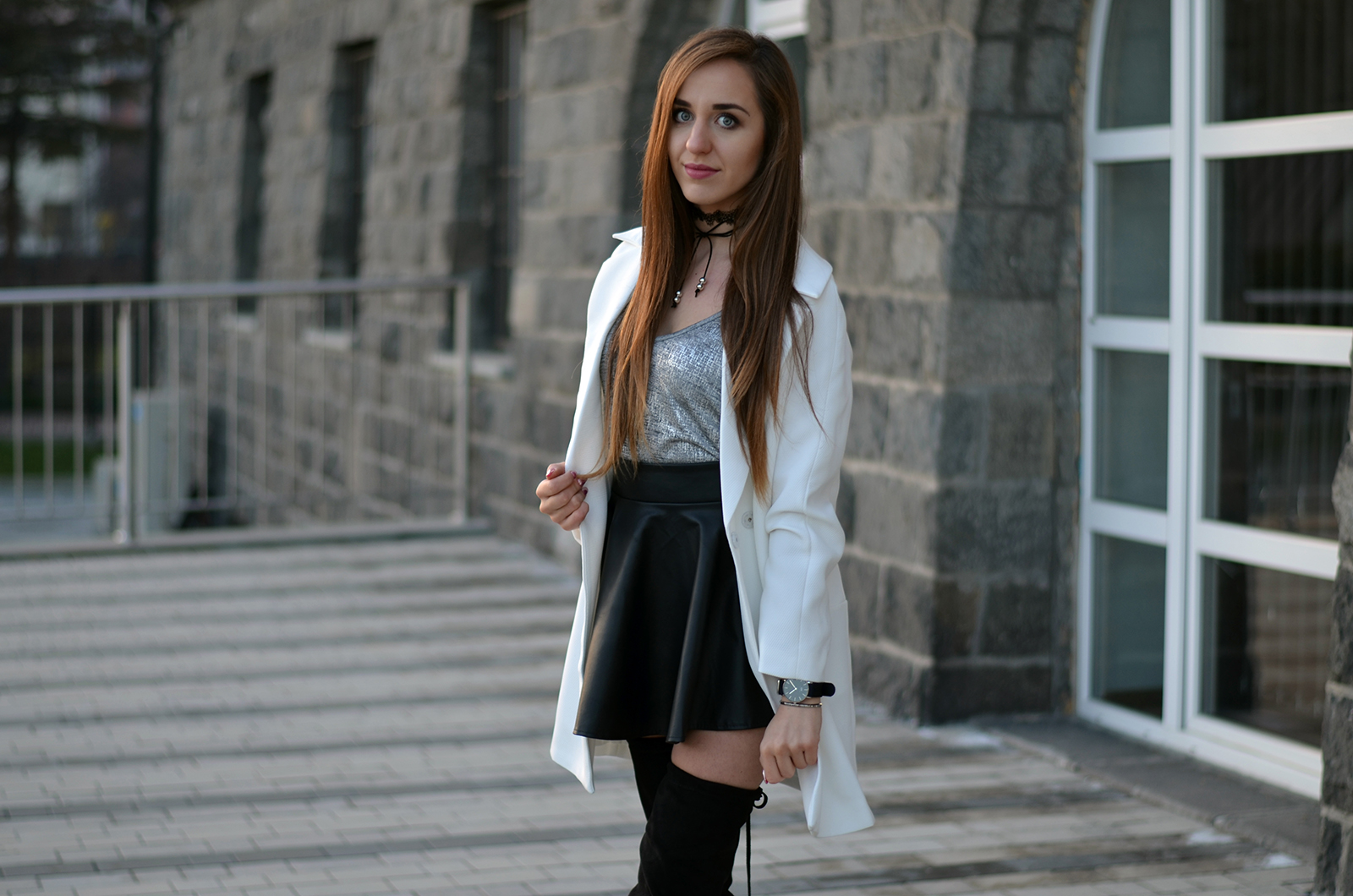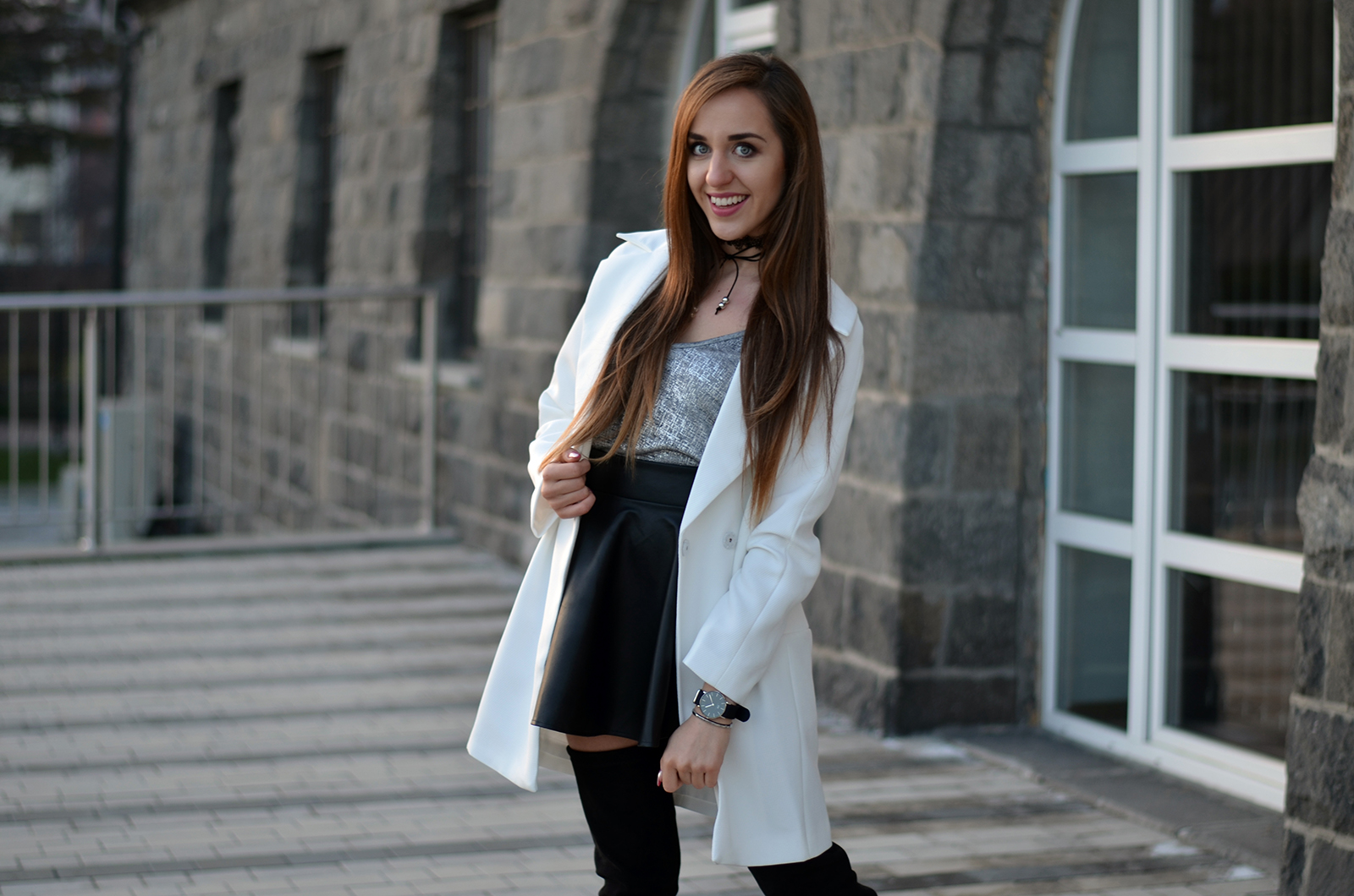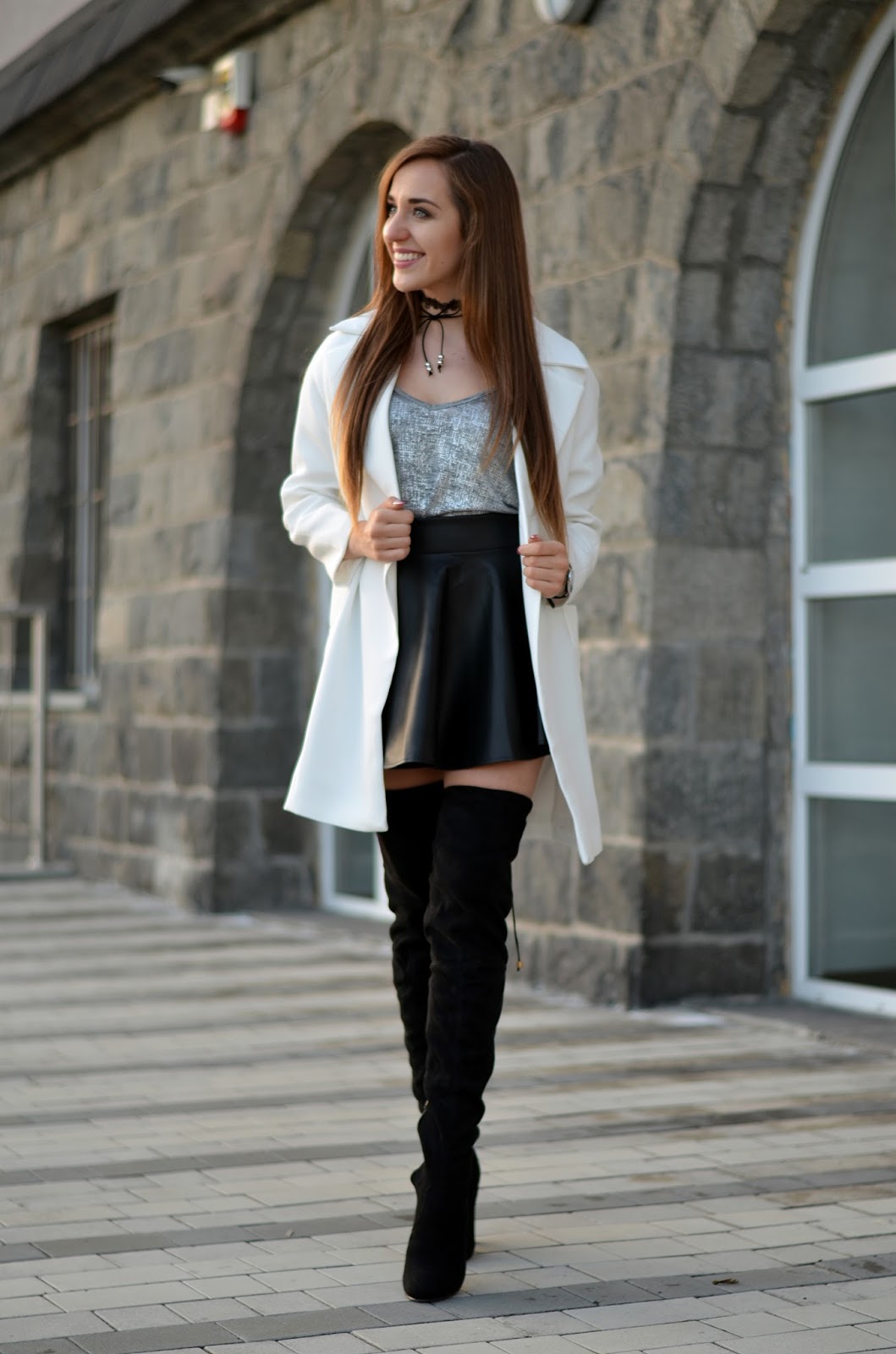 STYLEWE WHITE COAT | DRESSLILY BLACK CHOKER