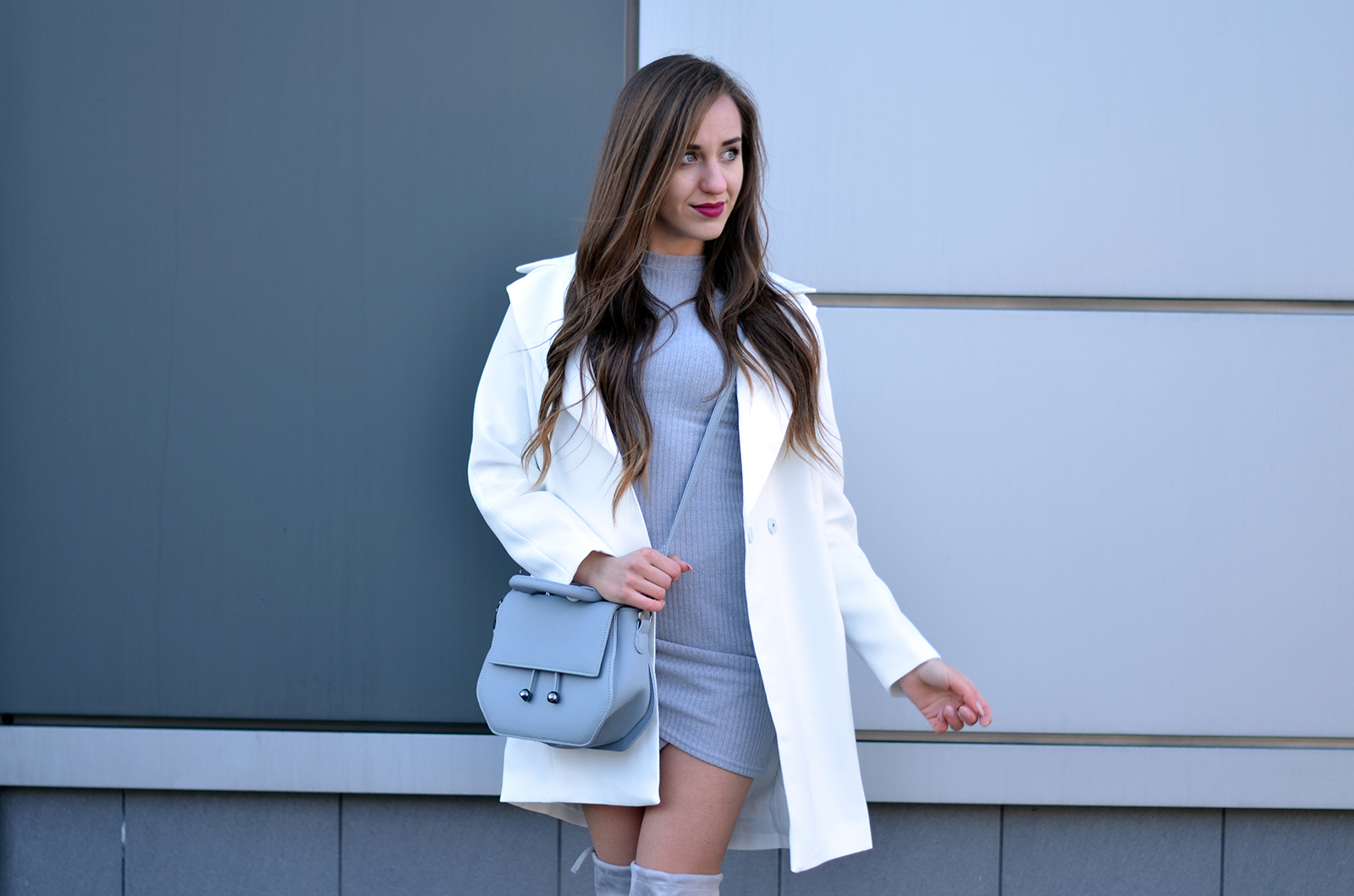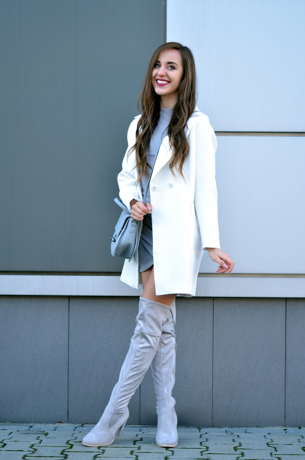 STYLEWE WHITE COAT | GAMISS GREY DRESS AND BAG