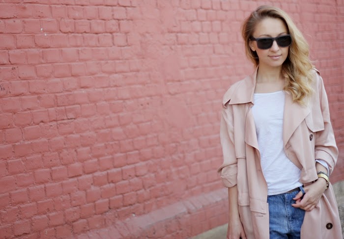 Zobacz oryginał sob., 18/04/2015 - 15:57Płaszcz z dzisiejszej stylizacji już zapewne dobrze znacie. I nie ma w tym nic dziwnego, ponieważ jest to jeden z moich ulubionych płaszczy i dość często pojawia się w postach. Uwielbiam jego pastelowy kolor, który idealnie sprawdza się przy tworzeniu wiosennych stylizacji. Jest uniwersalny, dzięki czemu świetnie wygląda z sukienką, spódnicą i szpilkami oraz dżinsami i botkami lub trampkami. Dżinsy z dziurami podbiły moje serce! Te, które dziś widzicie miały przetarcia od nowości, jednak muszę się przyznać, że najchętniej podziurawiłabym wszystkie spodnie w szafie. Dzięki przetarciom i dziurom, stare i od dawna zalegające w szafie dżinsy mogą stać się bardzo modną częścią garderoby i zyskać drugie życie. Zachęcam Was do takich przeróbek!