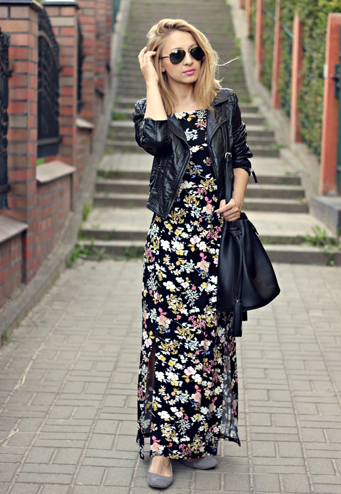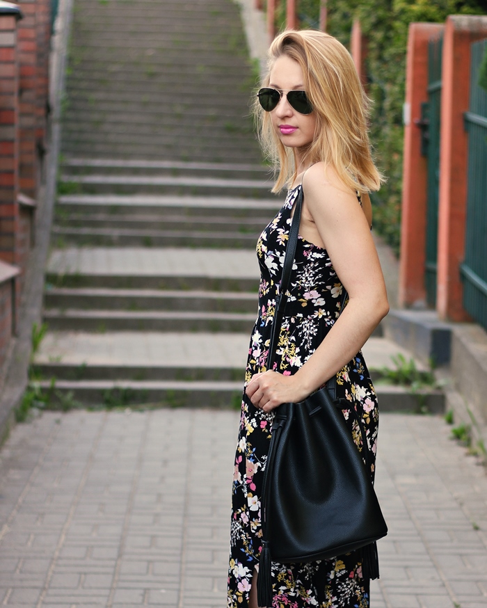 Zobacz oryginał wt., 07/07/2015 - 09:52Wiosną i latem kwiatowy wzór na ubraniach dominuje na sklepowych półkach i wystawach, możemy przebierać w ubraniach i dodatkach, których motywem przewodnim są kwiaty. Co prawda w mojej szafie nie ma zbyt wielu kwiecistych ubrań, jeżeli już to z reguły wybieram delikatne, prawie niewidoczne printy. Tym razem jednak zrobiłam wyjątek, second handy jak zwykle nie zawiodły. Do grona sukienek maxi dołączyła kolejna o większym i bardziej odważnym wzorze. Kwiaty na ubraniach w tym sezonie powinny być dość mocno widoczne, wręcz przykuwające uwagę. Warto jednak zachować umiar, aby nie przesadzić. W mojej stylizacji sukienka jest mocnym akcentem, dlatego postawiłam na minimalistyczne dodatki.