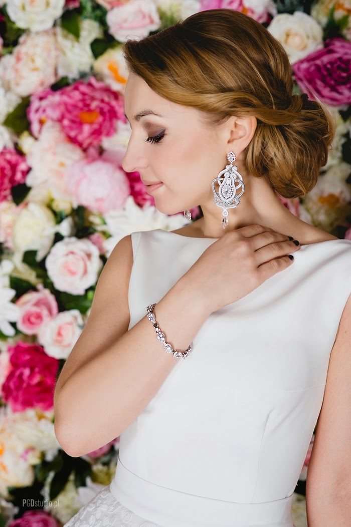 Ciesze się, że mogłam uczestniczyć w takiej sesji, ponieważ jest to dla mnie cenne doświadczenie oraz dobra zabawa. Ogromnym plusem jest również nawiązanie nowych znajomości, kontakt z ludźmi, którzy żyją swoją pasją w 100 % wpływa na mnie bardzo pozytywnie. Wracając jednak do samych zdjęć - sesja bardzo wiosenna, wręcz letnia. Uwierzcie mi, że ta ścianka z kwiatów na żywo wygląda jeszcze lepiej ( o ile to możliwe :) . Z pewnością kosztowała wiele pracy osoby, które ją wykonywały, jednak efekt jest zachwycający. Do zdjęć użyłam białej sukni od polskiej projektantki Violi Piekut. Surowa, bardzo minimalistyczna góra idealnie zgrała się z koronkowym dołem. Wychodzę z założenia, że prostota jest zawsze najlepsza. Ważnym akcentem i dopełnieniem stylizacji jest ozdobna biżuteria, która pomimo sporej wielkości absolutnie nie przytłacza,a zdecydowanie zdobi. Jestem ciekawa waszej opinii, co sądzicie na temat zdjęć i stylizacji? :)
