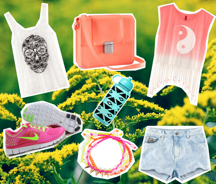 H&M Top / H&M Bag / H&M Top / Nike Shoe / Victoria Secret water bottle / H&M Shorts /