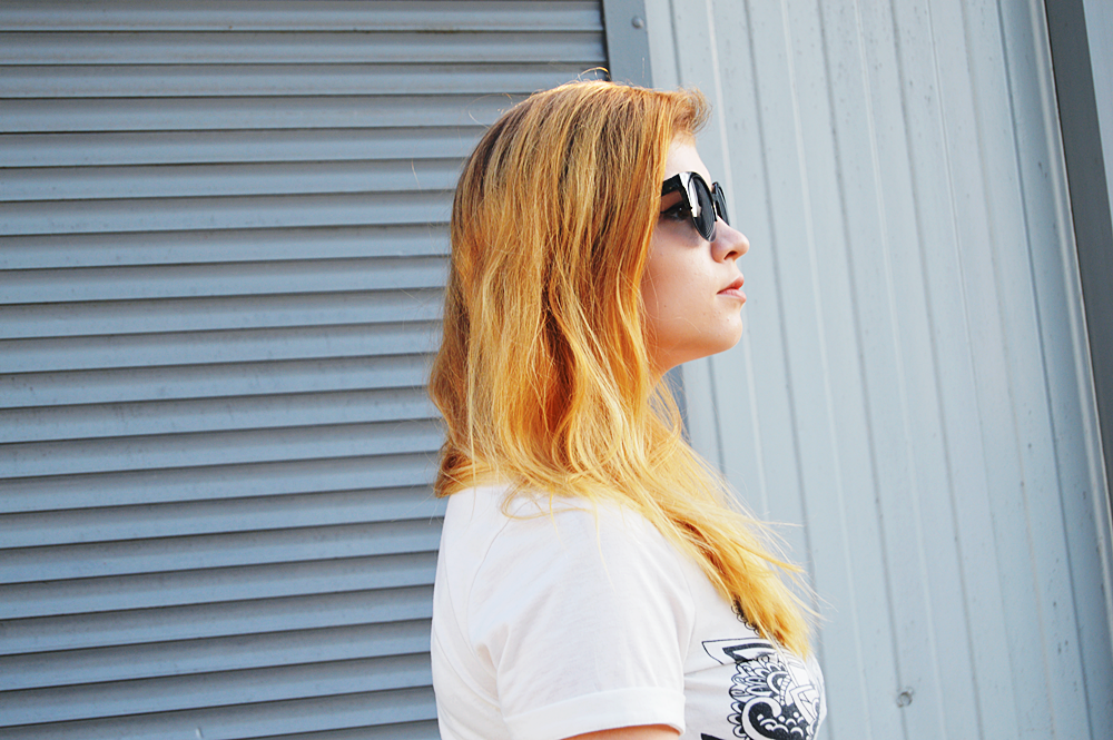 Koszulka - (click) | Spódniczka - Yoins | Buty - Born2be | Okulary - (Wholesalebuying)