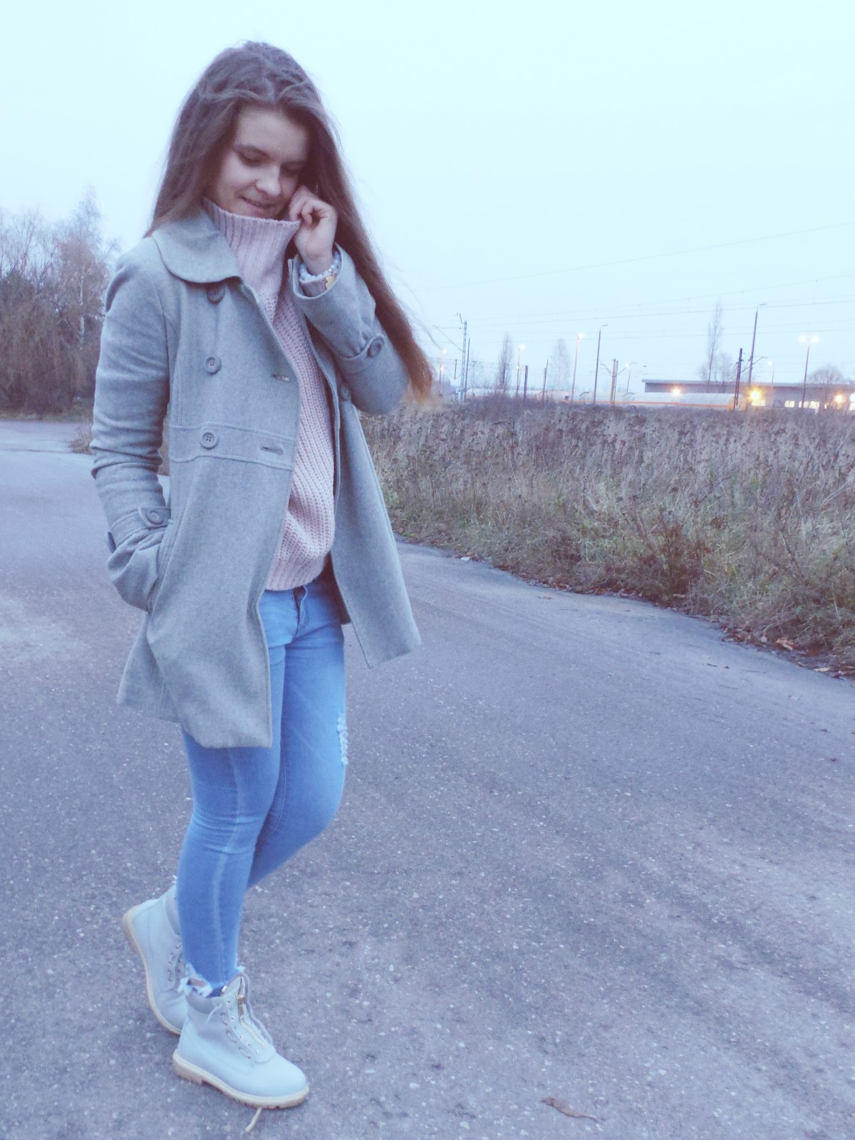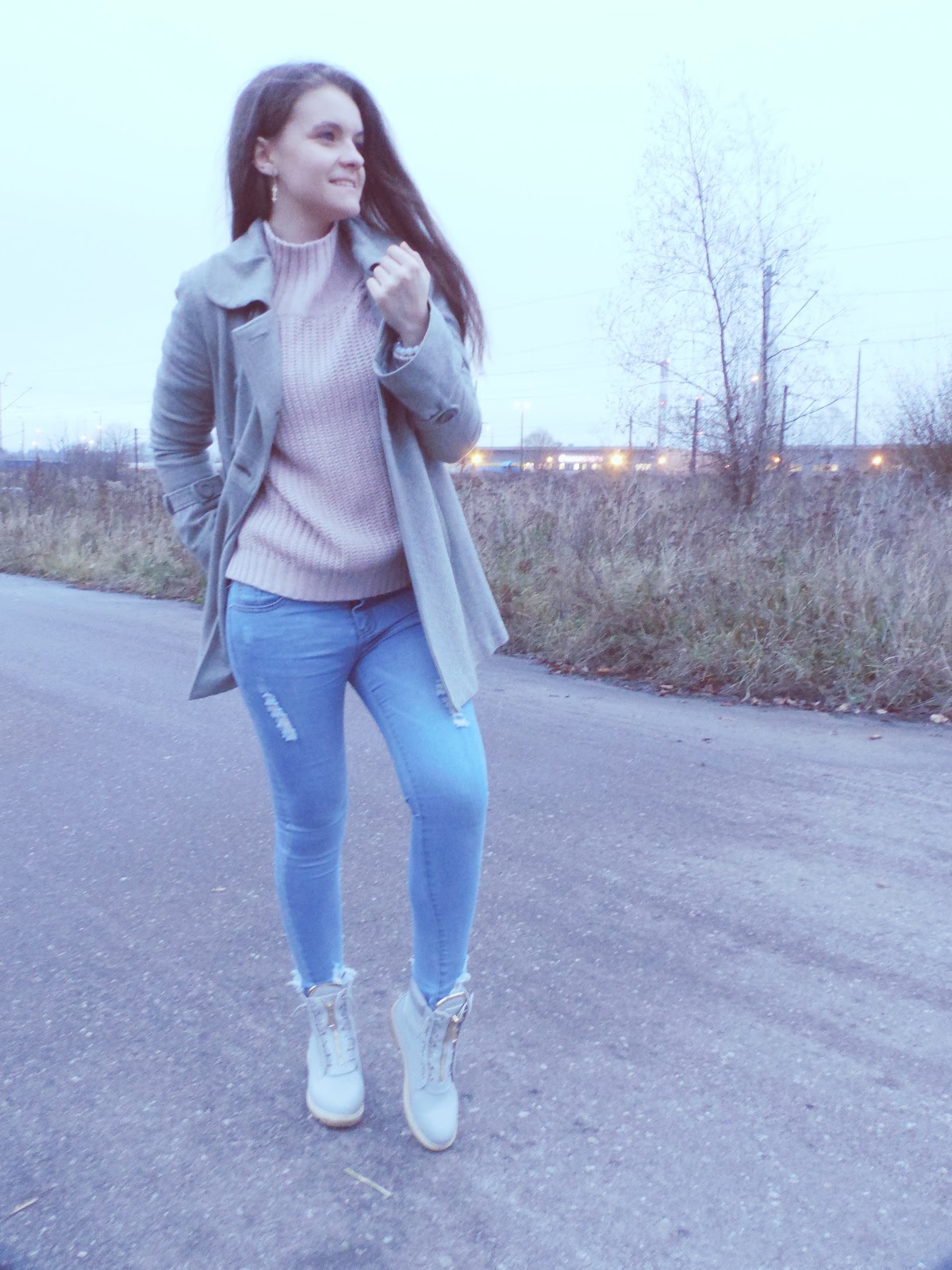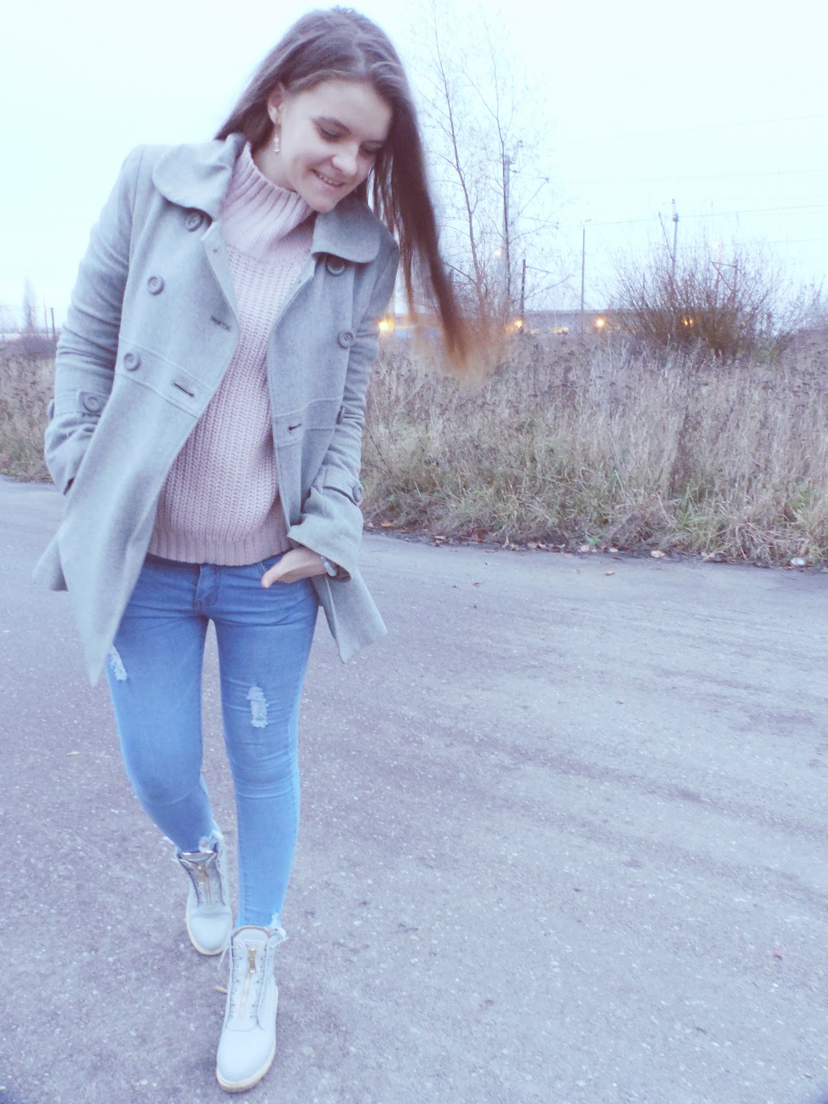 Połączyłam je z pudrowym sweterkiem od rosewholesale.