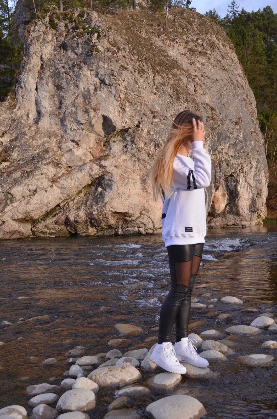 bluza MISBHV, leginsy Choies.com, buty Nike, pierścionki H&M
