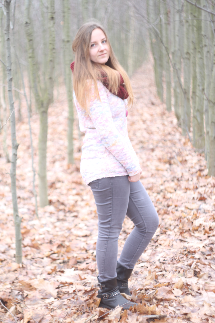 Dzisiaj trochę zdjęć z sesji, wybrałam te, które najlepiej przedstawiają zestaw.Na ten sweterek polowałam dosyć długo, ale na pomoc przyszła mi wyprzedaż. Komin dostałam od babci na święta. Wygodnie i przede wszystkim ciepło.