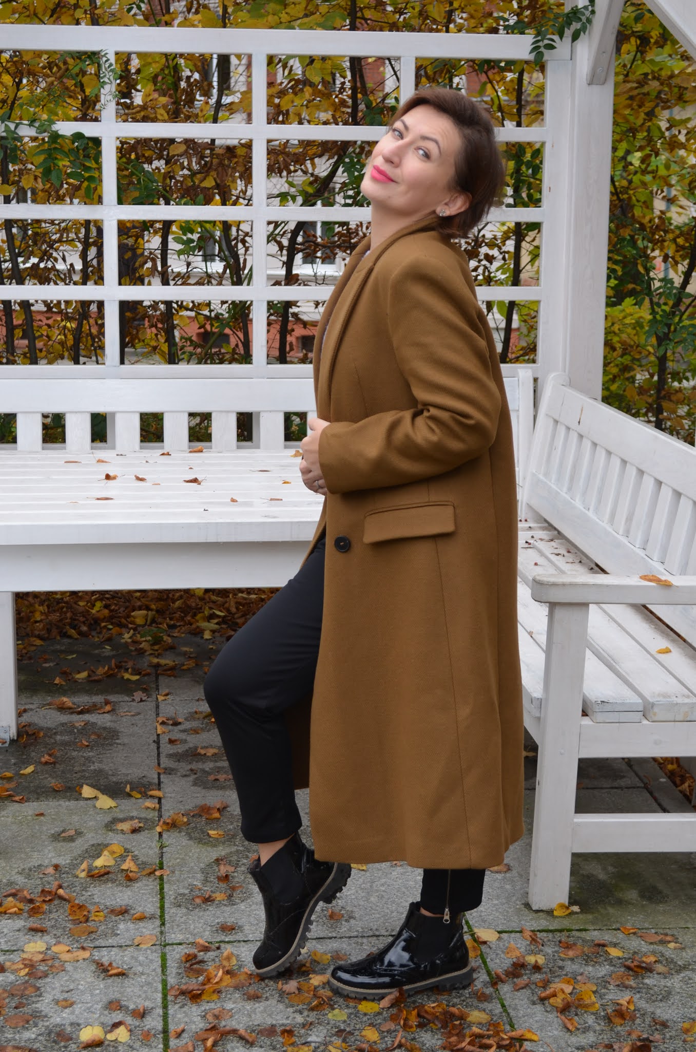 Bohaterem dzisiejszych zdjęć jest ten dłuższy płaszcz Zara w pięknym kolorze toffie. Niestety nie trafiłam z rozmiarem, M okazało się na mnie za duże.