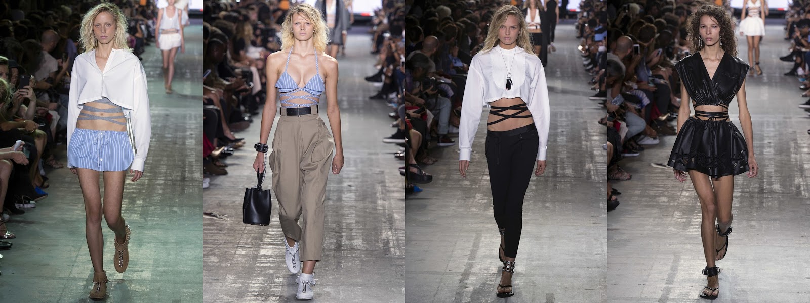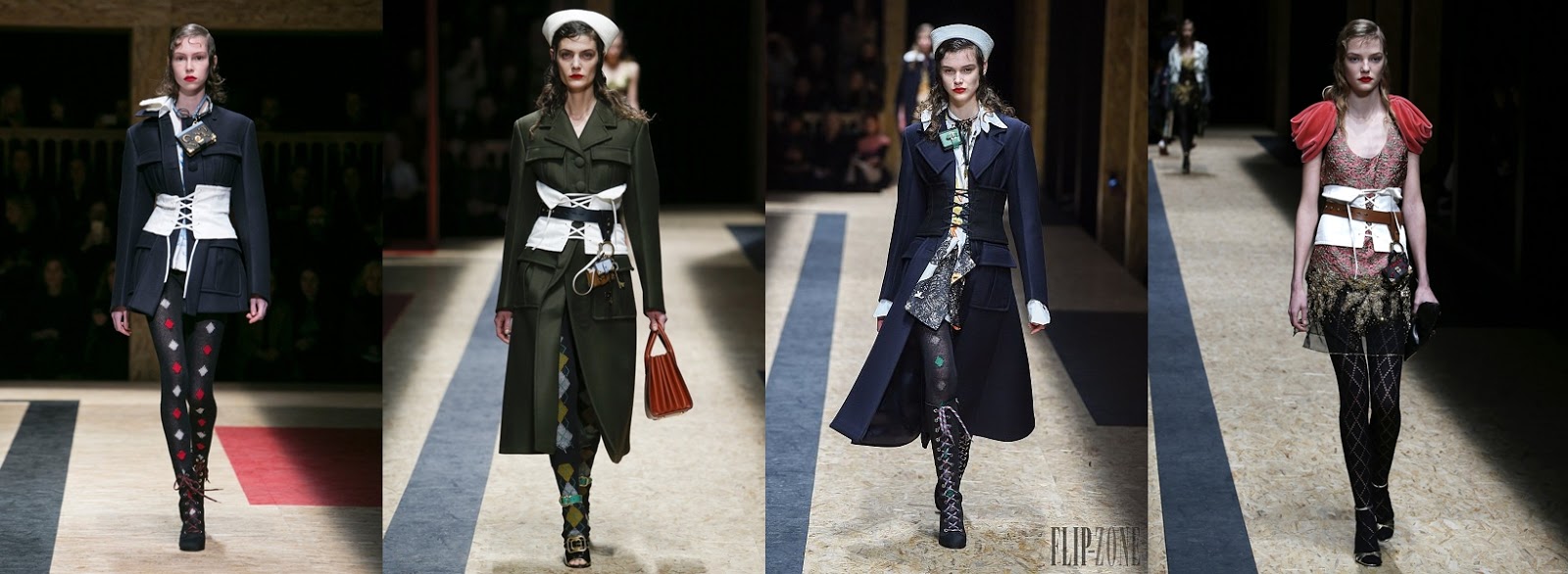 Talia była mocno podkreślona na pokzach u wielu projektantów, niekoniecznie typowym gorsetem, ale często w postaci szerokich pasów jak np. u Alexandra McQuenna. Był bardzo widocznym elementem stylizacji na pokazach Prady w kolekcji jesień/zima 2017. Natomiast w postaci cienkich paseczków przeplatanych w talii u Alexandra Wanga.