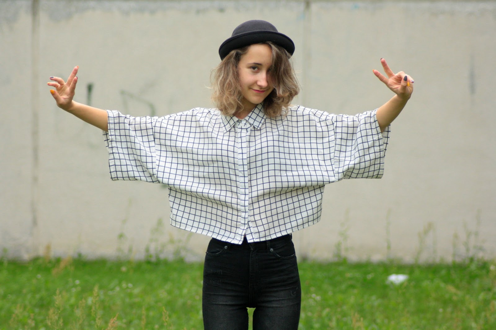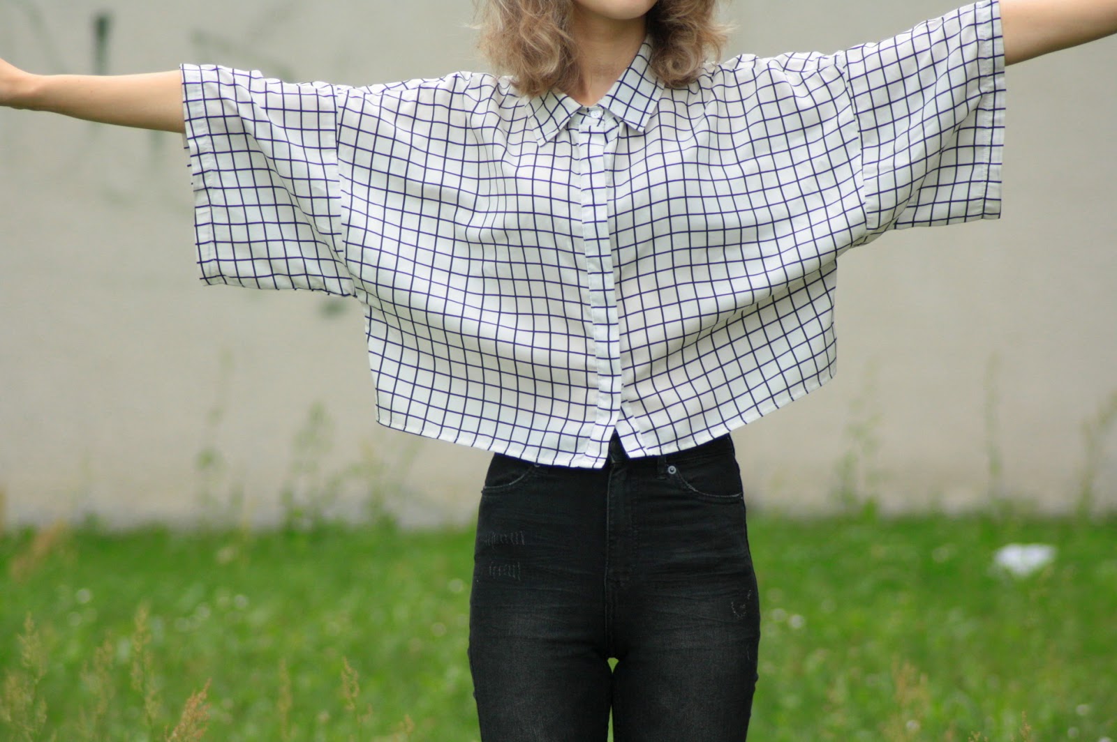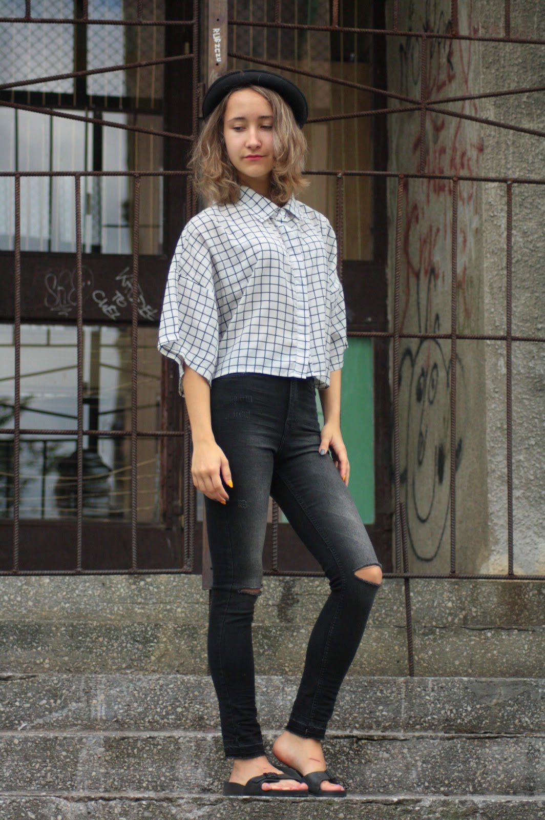 Jeansowe spodnie z przecen w H&M udało mi się upolować za jedyne 30 zł. Porównując z poprzednią ceną - 129,99 zł, to obniżka jest naprawdę ogromna. Drugą przecenową okazją są bardzo wygodne klapuszki z miękkiej pianki, które za niecałe 13 zł kupiłam w New Yorkerze. Głównym punktem stylizacji jest jednak koszula w bardzo znany z portalu Tumblr motyw "grid", czy też biało-czarna krata. Dopadłam ją w lumpeksie i zapłaciłam niecałe 3 zł. Jest to duży rozmiar, ale uważam, że taka wielka wygląda naprawdę fajnie.