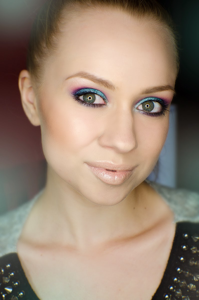 Tusz w akcji: wykorzystałam go jako zwieńczenie mojego letniego makijażu, w którym główny, kolorowy akcent pada właśnie na oczy.