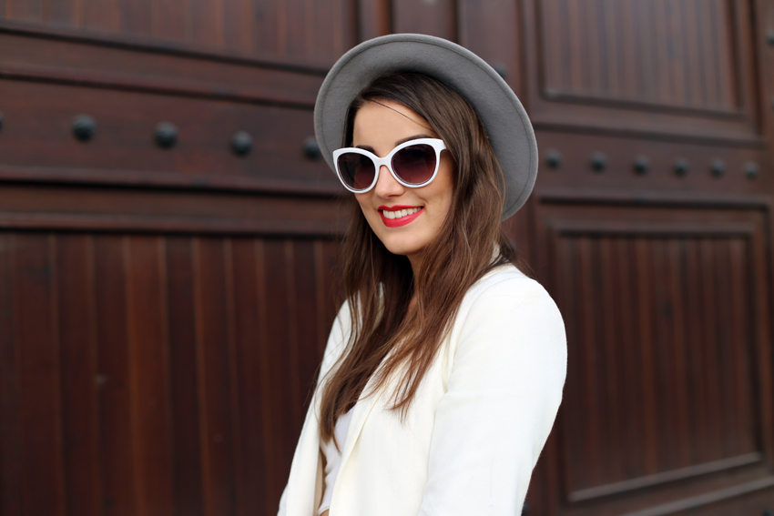 Spodnie:  H&M  o  Top: TUTAJ  o  Marynarka: MASSIMO DUTTI  o   Kapelusz: VINTAGE  o  Torba: JUST CAVALLI  o  Szpilki: MICHAEL KORS