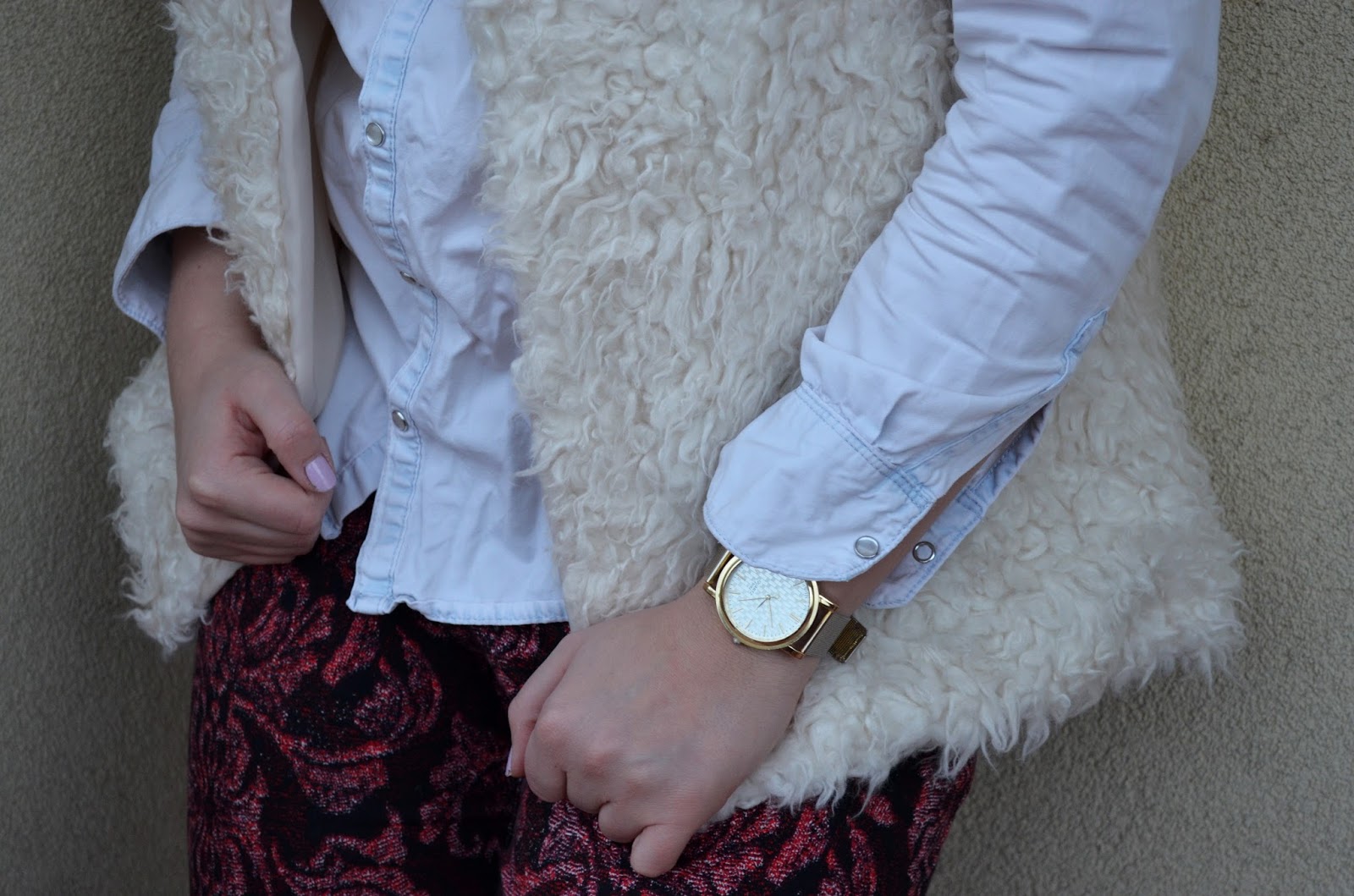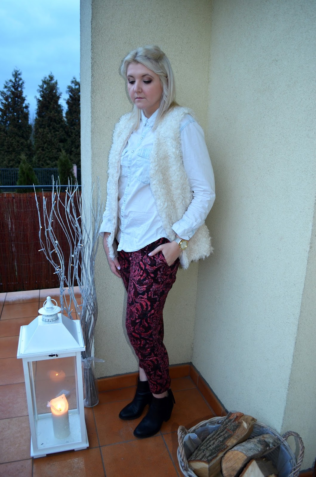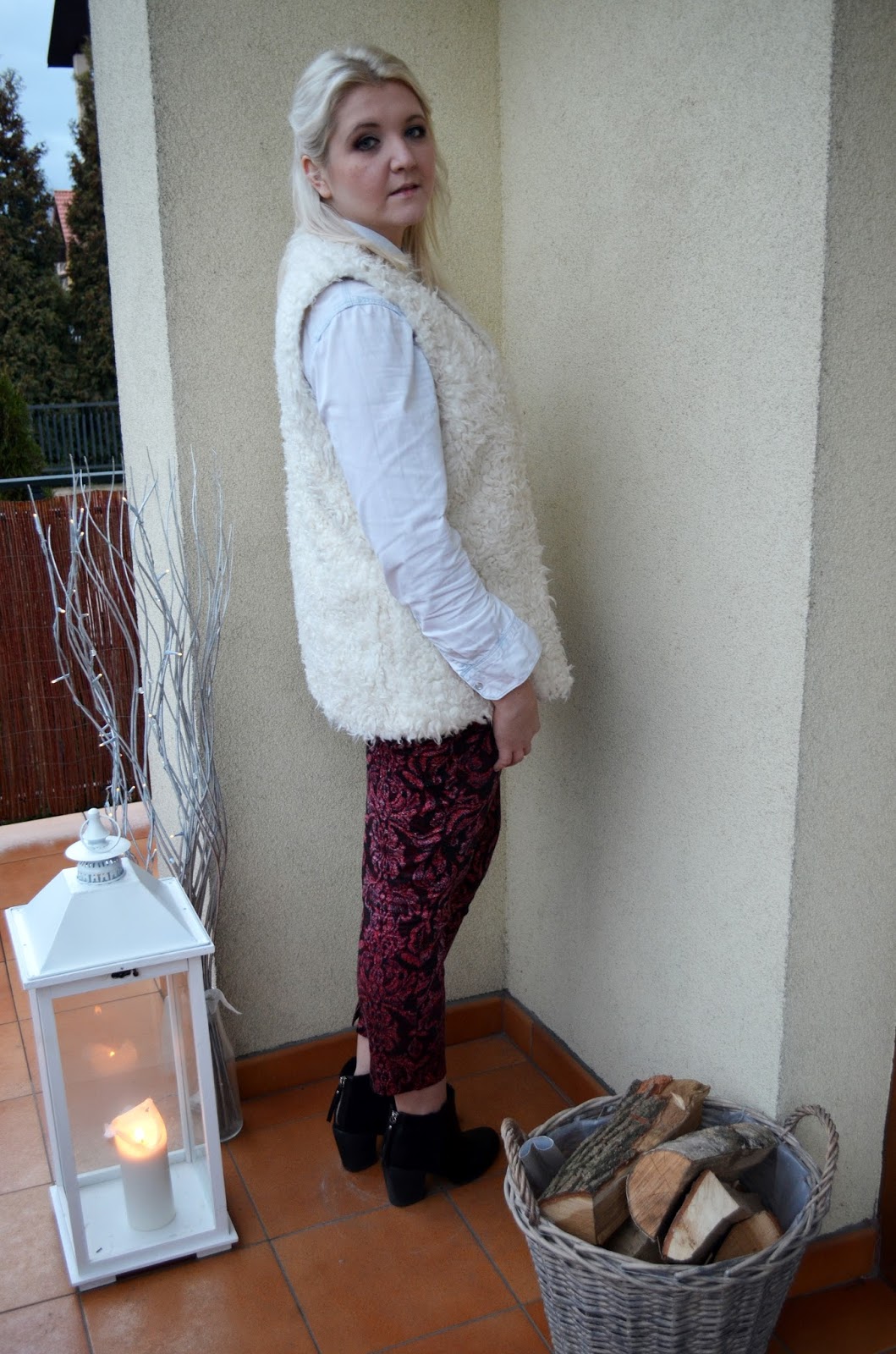 However, we failed to prepare post with New Year's Eve stylizations we hope that it will be forgiven :) We are back with winter outfits.We finally have first snow and the temperatures do not spoil us but what we have winter for? Yes, it is cold outside therefore, you should purchase a warm vest! Yes, it will be our lead theme today. We just loved such vests recently. They not only protect us from cold but also look amazing. They can give some character to our look. They are a great alternative to feather, sporty vest. These furs are very feminine. Suitable for both dresses (in previous post) and pants, heels and trappers. They prove us to be very versatile. If you have it in your closet you will certainly use it a lot! :)
