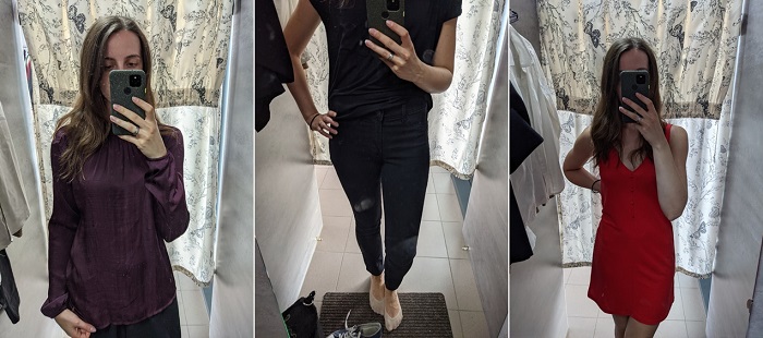 Przymierzalnie są niewielkie, bez żadnego krzesełka, ale za to mają sporo wieszaków w środku. Przed wejściem do przymierzalni należy zgłosić ilość wnoszonych rzeczy pracownikowi sklepu, który obsługuje daną część sali.
