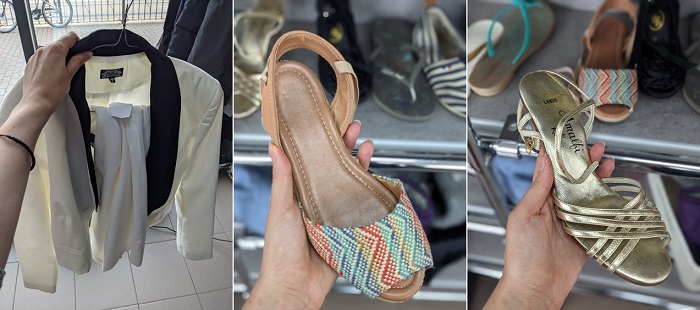 Z moich znalezisk - wiskozowa sukienka z Mango, rozmiar XS (pewnie dlatego nikt jej do tej pory nie wziął), ale spokojnie się w nią zmieściłam, kilka koszul (tych dobrze skrojonych, klasycznych oraz jedna oversize od Monki). Sporo spodni prostych oraz rurek. No i skórzane paski. Akurat trafiłam na dzień, gdzie wszystko było po 5 zł.