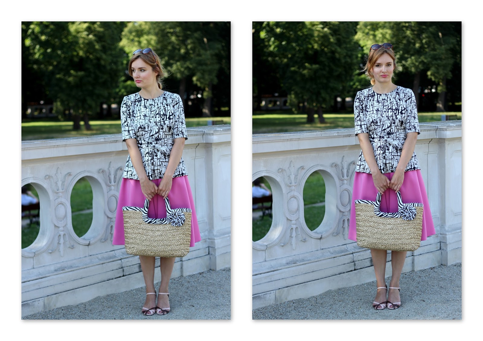 bluzka/t-shirt - ZARA, spódnica/skirt - Atmosphere, koszyk/basket - sh, okulary/sunglasses - CARRY, szpilki/heels -ZARA