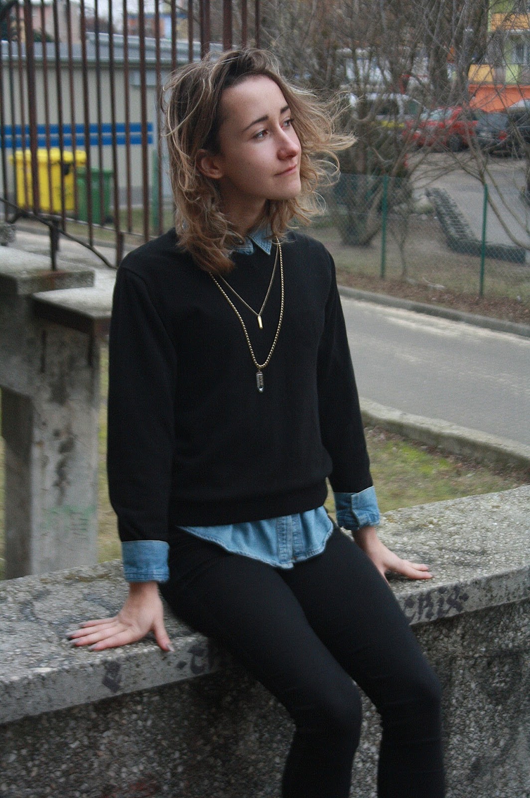 Koszula|Vinted| Sweter|Lump| Spodnie|PullandBear| Buty|Allegro| Naszyjniki|H&M|