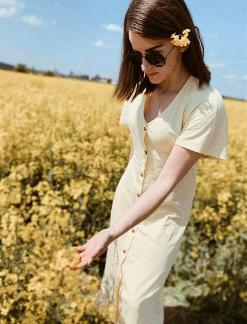 Zobacz oryginał czw., 21/05/2020 - 19:52Hi!Prezentuje żółtą sukienkę z guzikami. Długość midi.Do wiosennej stylizacji założyłam sportowe buty.Nowością jest maska ochronna.W modny,oryginalny wzór niebieskie moro.Dodatki to naszyjnik z literą E oraz okulary.Zapraszam do oglądania!