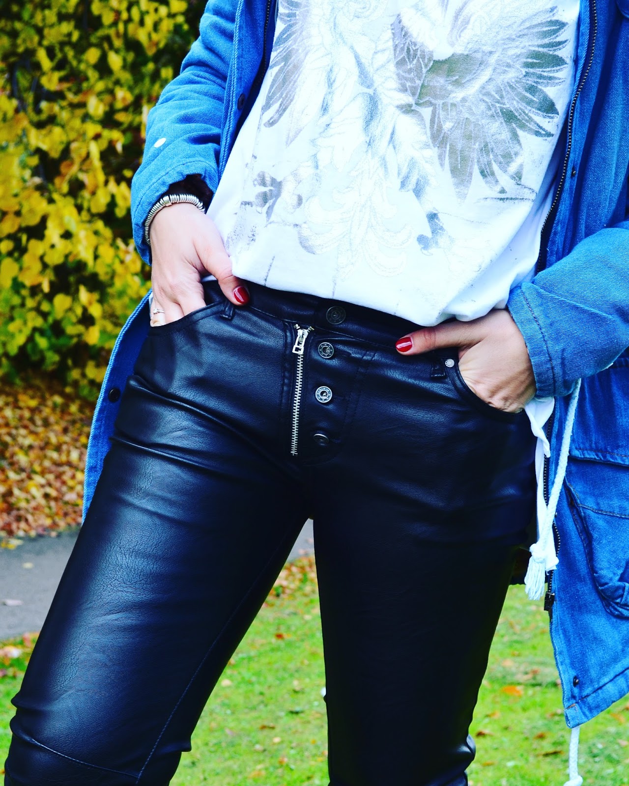 Jesień w moim ulubionmym stylu to jeans i skóra.