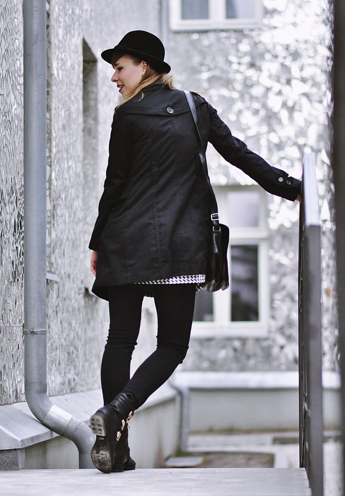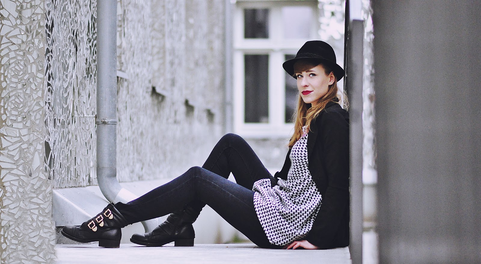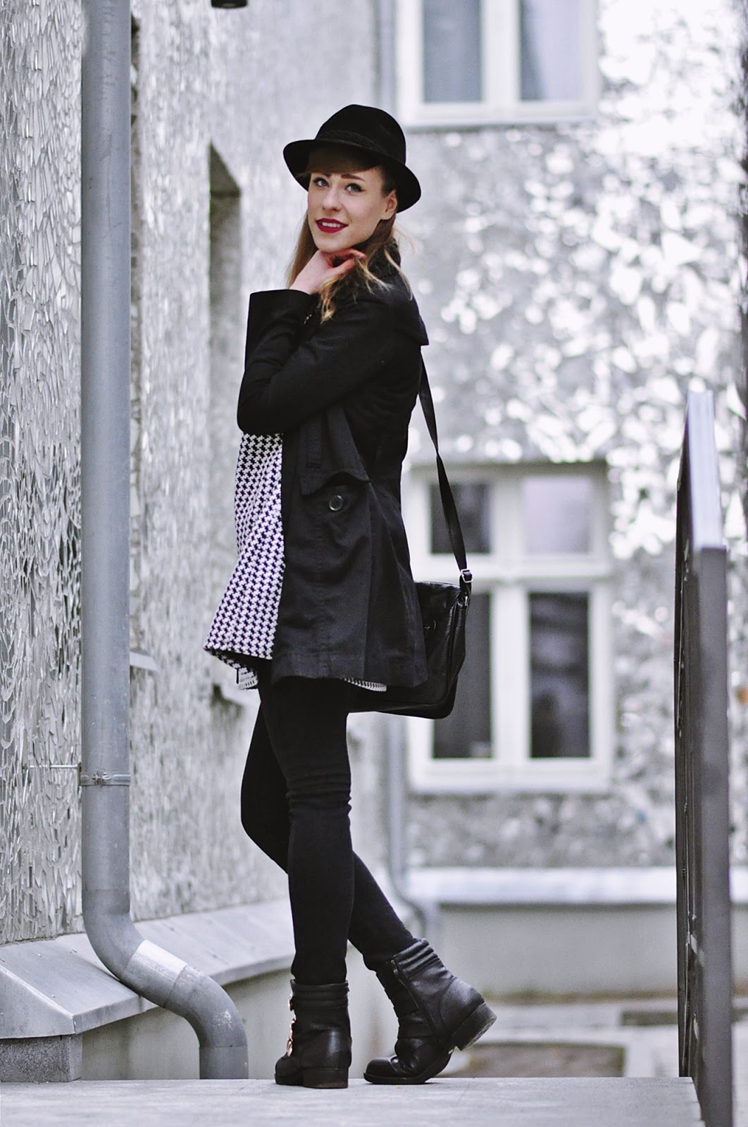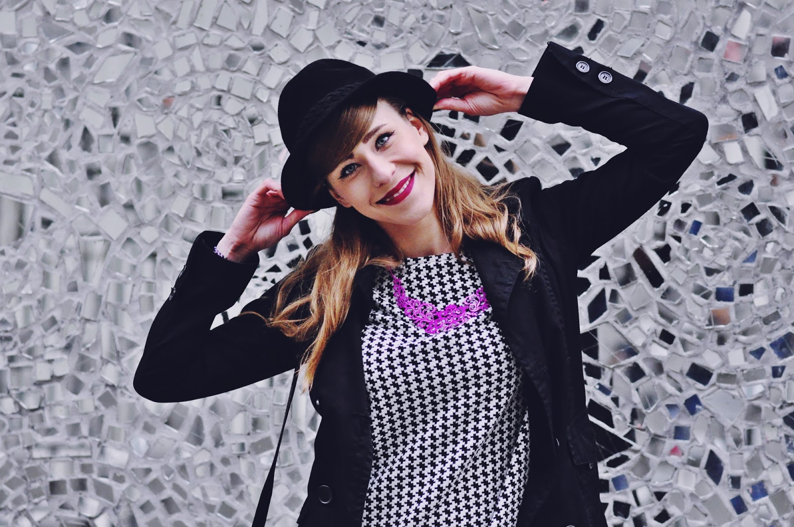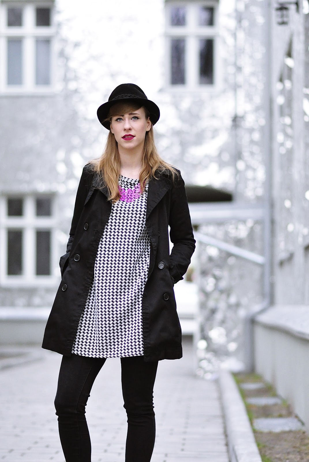 Co do zestawu, to mam na sobie dwie nowości, pepitkową tunikę i spodnie, czyli moje lumpeksowe zdobycze. Dodatki już znacie, bo oprócz naszyjnika, który kupiłam na AliExpress, są powtórką z poprzedniego outfit'owego wpisu.