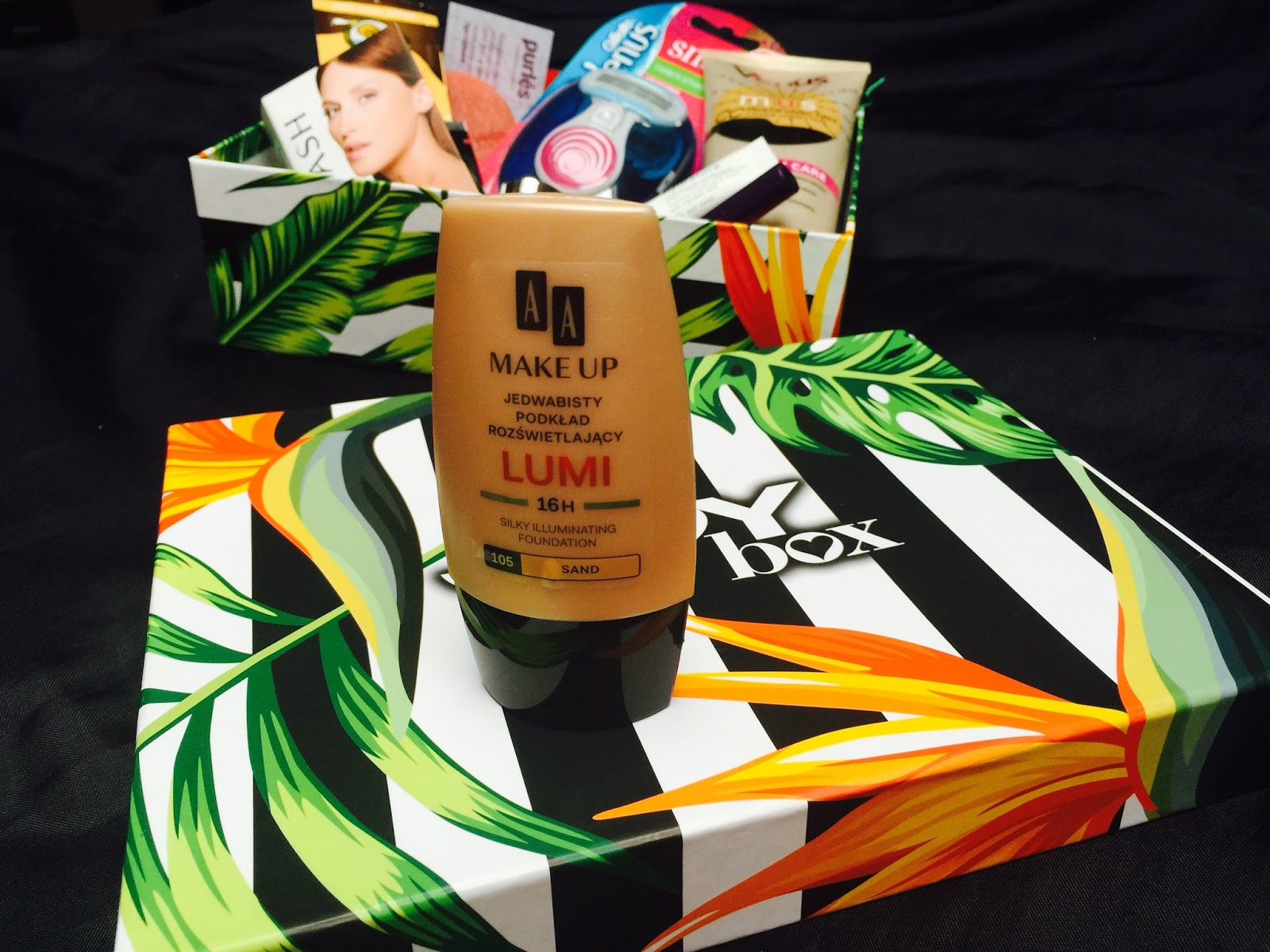 Kolejny kosmetyk to podkład od AA, którego odcienia nie można było wybrać. Podkład był w trzech rodzajach, do mnie trafił rozświetlający. Kolor to Sand, nr. 105. Na ręce wydaje się być całkiem w porządku dobrany, jednak wszystko okaże się w testach. Produkt jest pełnowymiarowy i będzie to pierwszy kosmetyk od AA.