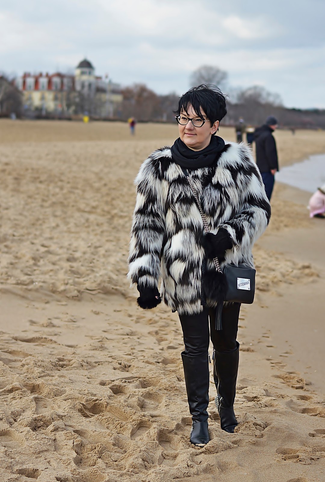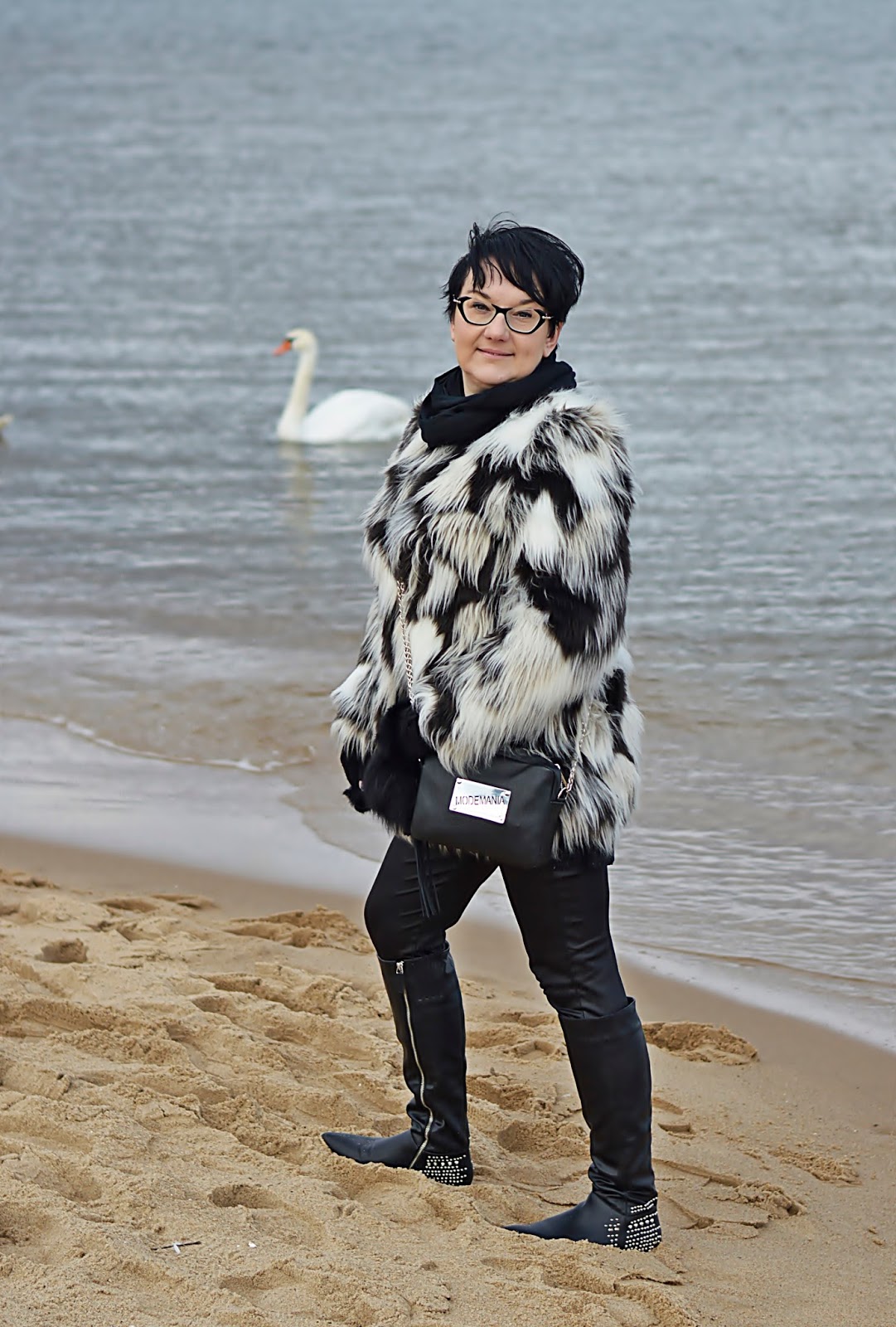 Jak to u mnie, reszta spokojna czarna. Kozaki wyciągnęłam z dna szafy. Kupiłam je chyba dwa sezony temu i tyleż razy miałam na nogach. To dlatego, że ostatnio wolałam złote okucia w torebkach. Odkąd mam oprawki ze srebrnymi dodatkami, wybieram ten kolor do reszty. Mówi się, że złoty i srebrny to kolory neutralne i można je łączyć ale je nie lubię.