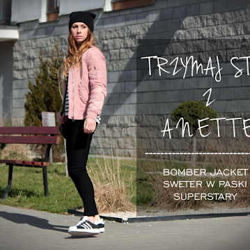 TRZYMAJ STYL Z ANETTE: ZESTAW Z RÓŻOWYM BOMBER JACKET 1 - SWETER W PASKI I SUPERSTARY