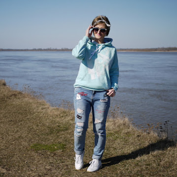 Na sportowo z naszywkami i w błękicie