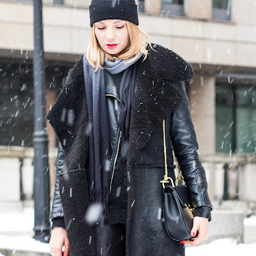CZARNY KOŻUCH + LAKIEROWANE BOTKI