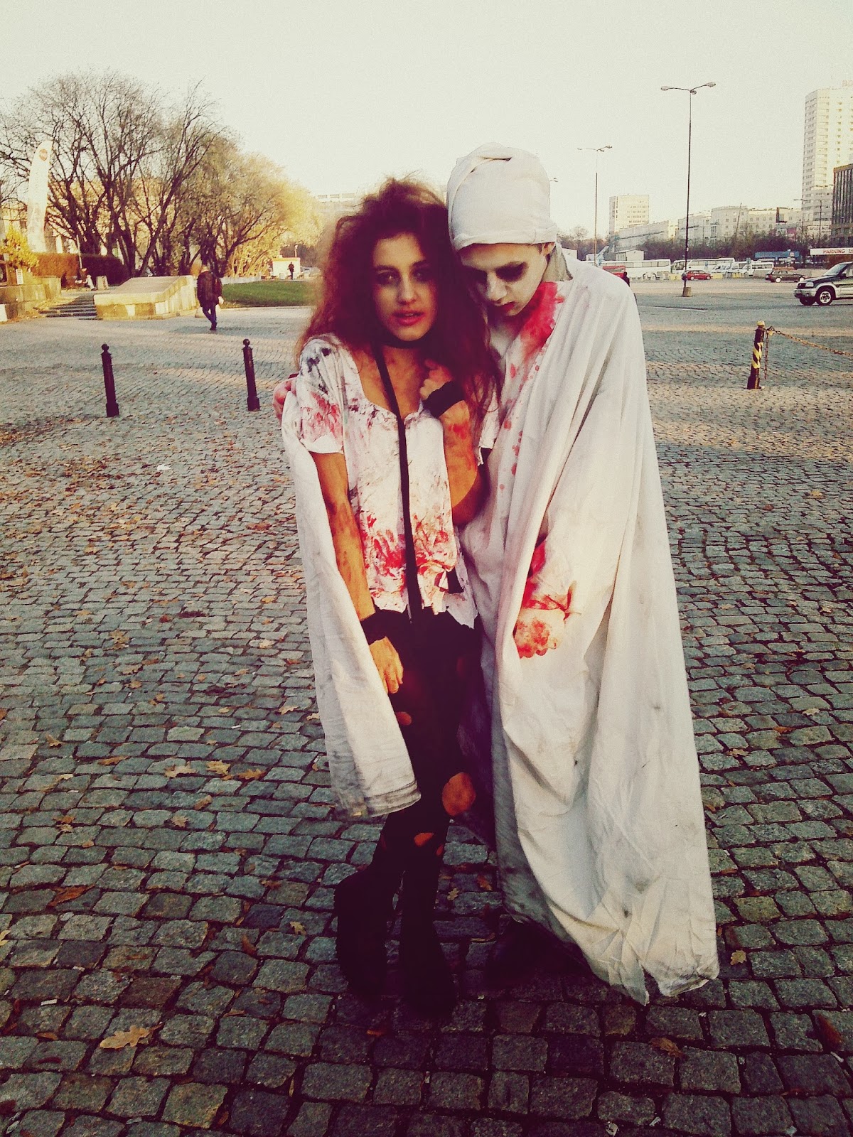 Zobacz oryginał sob., 02/11/2013 - 13:27W piątek u nas w szkole odbywał się konkurs wizażu. W związku jednak z całą halloween' ową atmosferą stwierdziliśmy klasą że przebierzemy się - tak dla siebie. Co okazało się później bardzo pozytywnie odebrane. Nie byliśmy jednak jakimiś banalnie umalowanymi uczniami. Po minach ludzi w centrum Warszawy wydaje mi się, że byliśmy ciekawą "atrakcją" ;p Dla mnie było to świetna przygoda. Wyróżniałam się i to mi się najbardziej podobało. A jak wyglądaliśmy zobaczcie niżej. Mam nadzieję, że Wam się spodoba <3