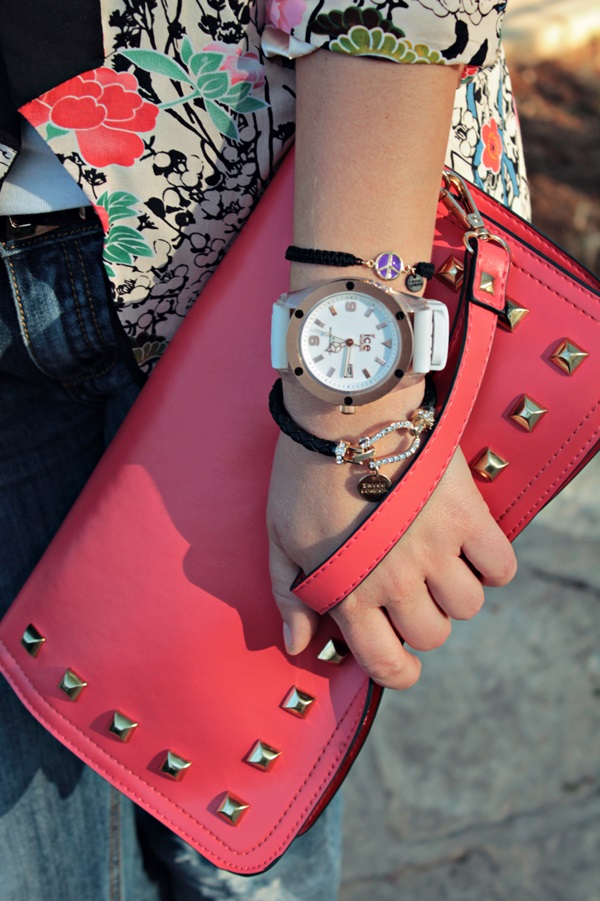 Nie wiem jak Wy ale kiedy tylko rozpoczyna się sezon wiosna-lato ja nabieram ochoty na mocne kolory i różne wzóry, szczególnie te które są nieodłącznym elementem tej pory roku. Dziś prosty zestaw, który tworzy żakiet na styl kimono...i boyfriend dżinsy.