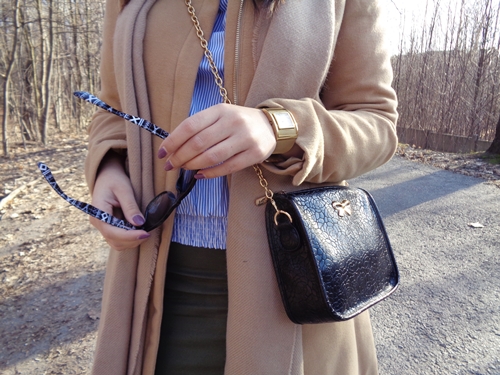 Zobacz oryginał sob., 04/03/2017 - 18:40 Bez zbędnych wstępów, dzisiejszy zestaw. Optymistyczne prognozy zapowiadające ciepły wiosenny weekend potraktowałam z przymrużeniem oka i postawiłam na cieplejszy płaszcz, do którego ubrałam prążkowaną koszulę o ciekawym kroju i spódnicę w kolorze khaki.
