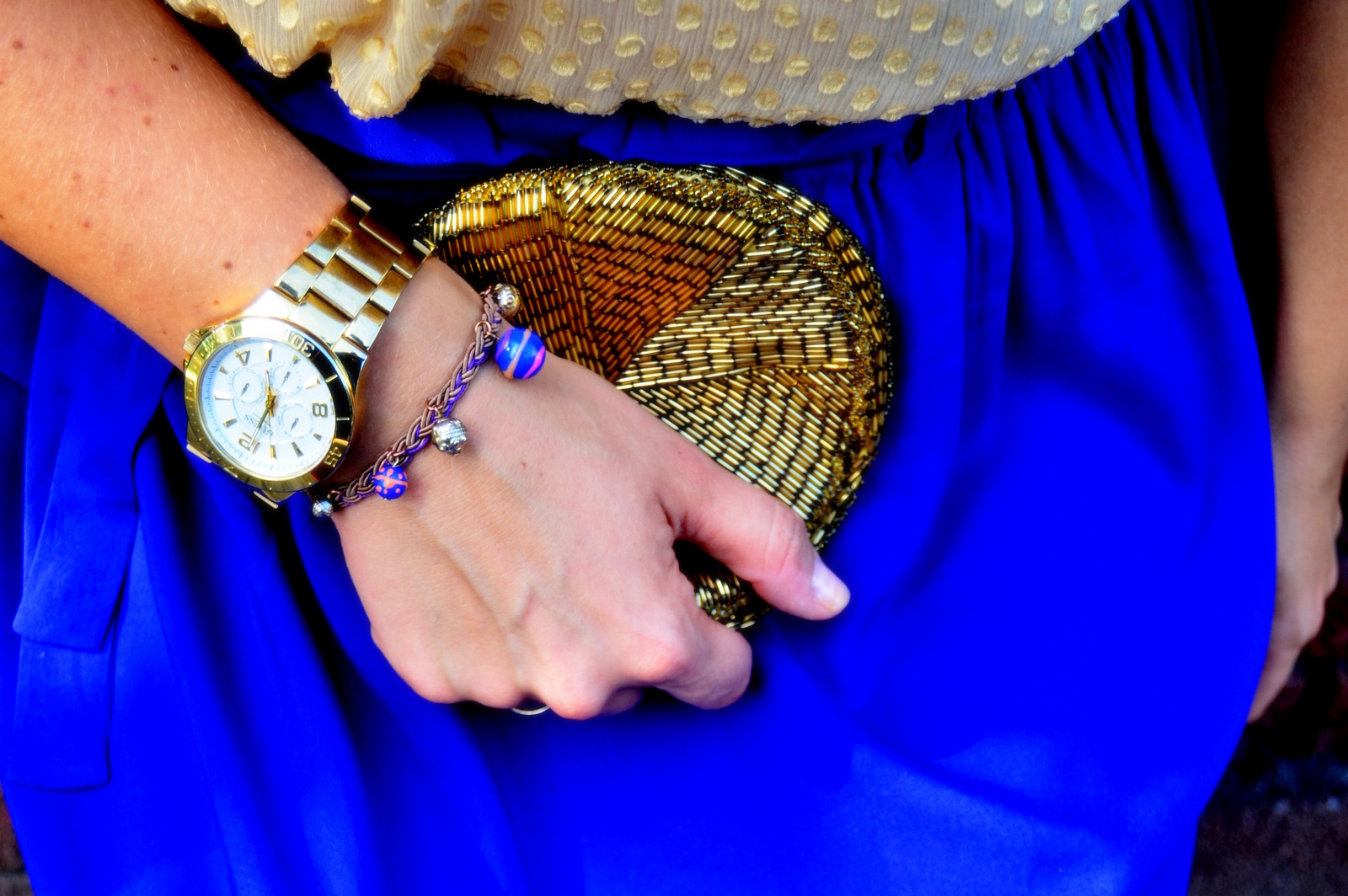 Zobacz oryginał czw., 12/07/2012 - 12:46Kto powiedział, że nie można ubrać się za grosze? Można. Dzisiejsza stylizacja jest tego dowodem. Jedwabna bluzka jeszcze z metką kupiona w ciucholandzie za 8 zł i kobaltowa spódnica z przeceny z New Look za 40 zł. Bardzo fajne połączenie mocnego koloru z delikatną żółcią. Do tego bogate dodatki i mamy super wakacyjny outfit.