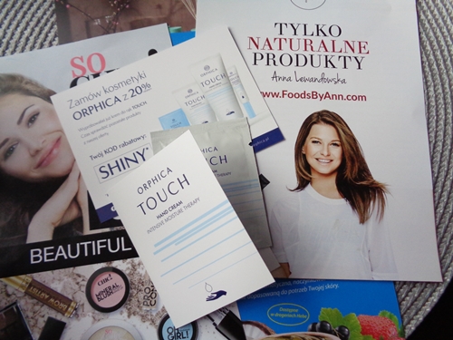 Trochę śmieszną rzeczą dla mnie była zaś próbka kremu do rąk Orphica przyklejona do ulotki w stylu "Wypróbowałaś nasz krem do rąk. Teraz zamów inne produkty". Jasne, bo po potraktowaniu dłoni jedną dawką kremu mam od razu ochotę kupować ich krem do twarzy, żel i nie wiadomo co. Nawet zniżka 20% mnie do tego nie skusi. Ta forma nie zachęciła mnie to poszukiwania w sieci co to za firma i co proponuje.