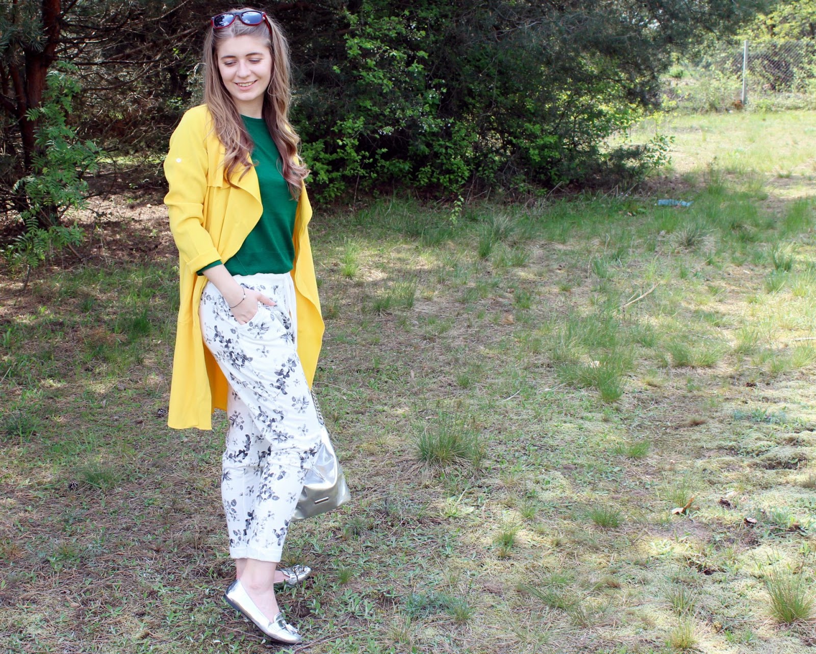 Czy widziałyście kiedyś piękniejszy kolor płaszczyka na wiosnę / lato? Cieniutki, niesamowicie miły w dotyku i do tego w przepięknym kolorku. Upolowałam go na stronie Lovelywholesale. Dobrałam do niego kontrastujący sweterek w równie pięknym kolorze- zieleni i srebrne dodatki. Mowa o jednej z ulubionych torebek od Riccaldi i baletkach. W stylizacji pojawiają się również okulary przeciwsłoneczne od eOkulary, w których także pojawia się kolor- czerwone wnętrze. Dreski, które dzisiaj pokazałam Wam w stylizacji, to jeden z ciekawszych zakupów, jakich ostatnio dokonałam, a mianowicie pochodzą z Pepco ;) Jakoś nigdy nie zwracałam tam uwagi na odzież, a jednak czasami warto, spodnie są rewelacyjne, cienkie i mięciutkie.