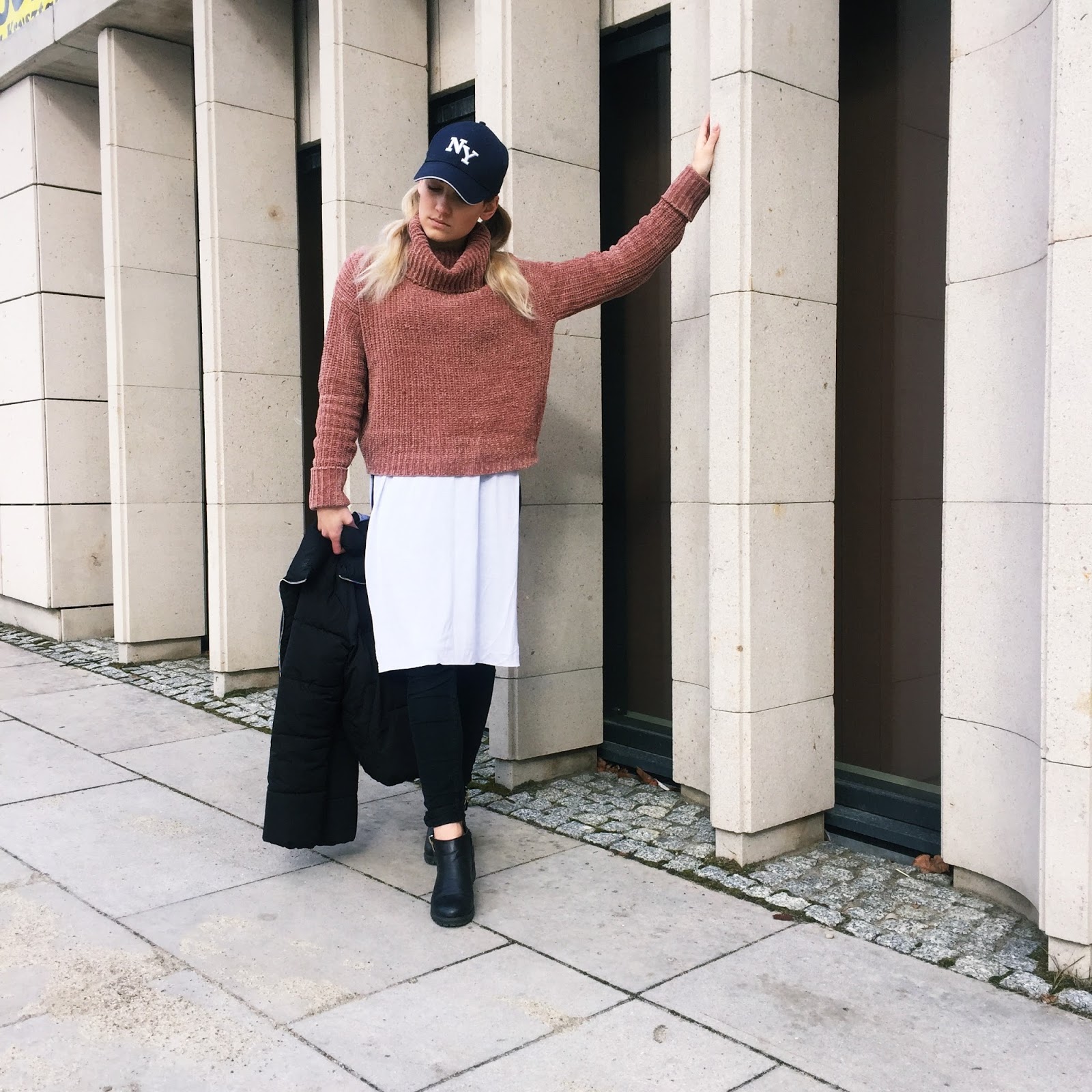 Kurtka, Spodnie - Bershka / Golf ,Bluzka - Calliope / Buty - New Look / Czapka - SportDirect