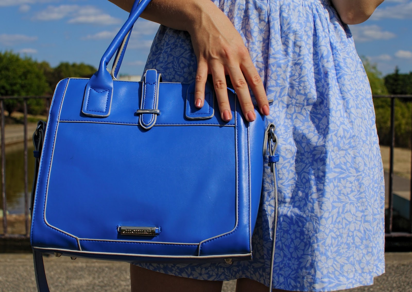 Hej kochani! Niebieska sukienka w kwiatowy motyw, połączona z kwadratową torebką i brzoskwiniowymi lekkimi pantofelkami tworzą prosty i dziewczęcy zestaw idealny na letnią pogodę. Co tu dużo mówić taka lekka sukienka powinna znaleźć się w każdej kobiecej szafie ;)