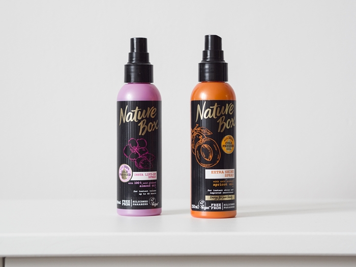 Morelowy spray do włosów był chyba moim pierwszym kosmetykiem z Nature Box. Schowałam go gdzieś i kompletnie o nim zapomniałam. A szkoda, bo teraz używam go prawie zawsze przed wysuszeniem włosów. To chyba on jest sprawcą tego, że moje włosy stały się znacznie bardziej błyszczące i miękkie. Po różowego kolegę jednak nie sięgam zbyt chętnie, chociaż dobrze unosi włosy i odbija je od nasady.