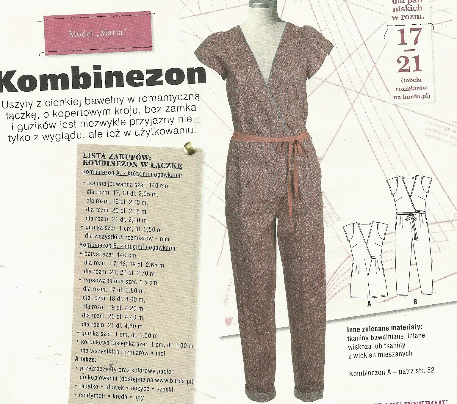 Kombinezon "Maria" - również w Burdzie 5/2013, wykrój 129