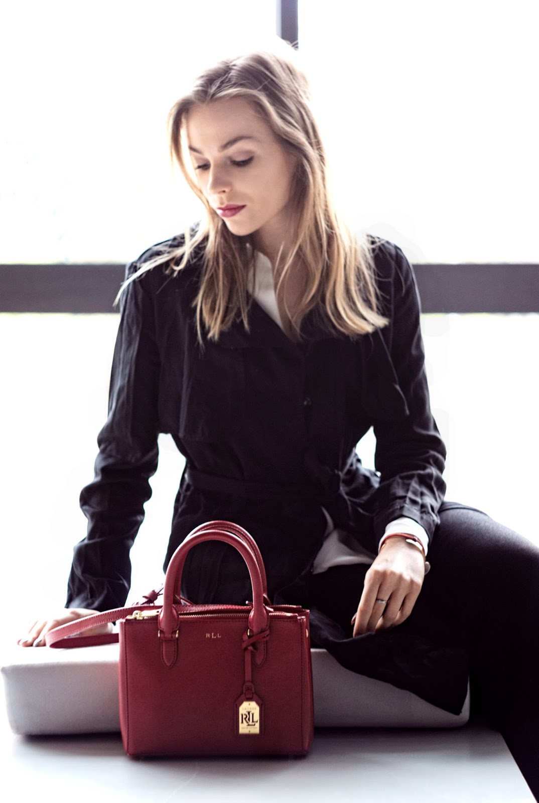 Hej! Nie wyobrażam sobie wiosny bez butów z dzisiejszej stylizacji, można je nosić praktycznie do wszystkiego, nadają całości lekkiej formy dzięki wiązaniom na kostce. Dzięki temu, że są na płaskim obcasie idealnie nadają się na co dzień. Postanowiłam, że dobiorę do nich luźną, białą koszulę i lekki czarny płaszcz. Nie mogło obyć się bez torebki, dzisiaj, aby przełamać kolorystykę, postawiłam na czerwoną torebkę Ralph Lauren ze złotymi elementami. Jak wam się podoba moja wiosenna stylizacja?