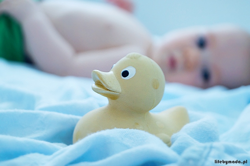 Oprócz wyciągania rączek, rączki stały się również bardzo sprawne, potrafi już przekładać zabawkę z ręki do ręki i do buzi. Nie ukrywam, że dzięki temu mam więcej czasu dla siebie. :p