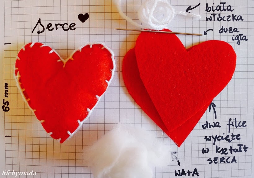 Do stworzenia zawieszek idealnie nadał się filc. Bardzo się dobrze z nim pracuje i jest szybki w obróbce. Przy każdej ozdobie najwięcej czasu zajęło mi jej obszycie. Szyłam według opisu, który wam pokazałam w poprzednim tutorialu ze świąteczną poduszką diy - zobacz TUTAJ.