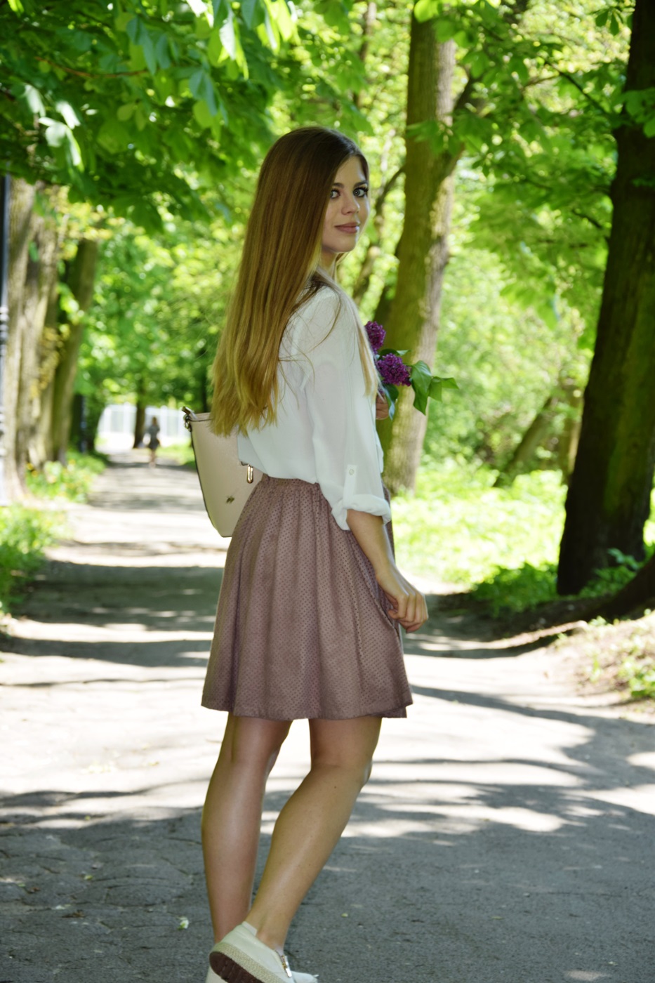 Zobacz oryginał ndz., 21/05/2017 - 17:11Hej Kochani! Dzisiaj na blogu wiosenna stylizacja z najpiękniej pachnącymi kwiatami czyli bzem. To pierwsze moje takie zdjęcia na bloga z kwiatami w ręku. Od zawsze podobały mi się takie zdjęcia u innych, ja jednak chciałam, żeby te kwiaty były polne (lub z ogrodu), a nie ze sklepu czy kwiaciarni dlatego postawiłam na bez. Takie gałązki bzu mają swój niepowtarzalny urok. W ten słoneczny dzień postawiłam na ażurową spódnicę, koszule i wygodne espadryle. Buty chociaż na płaskiej podeszwie to mają dyskretną platformę, dzięki czemu delikatnie wysmuklają nogi - uwielbiam je :) Całość uzupełniłam złotą biżuterią. Jak Wam się podoba? Dajcie znać w komentarzu :)