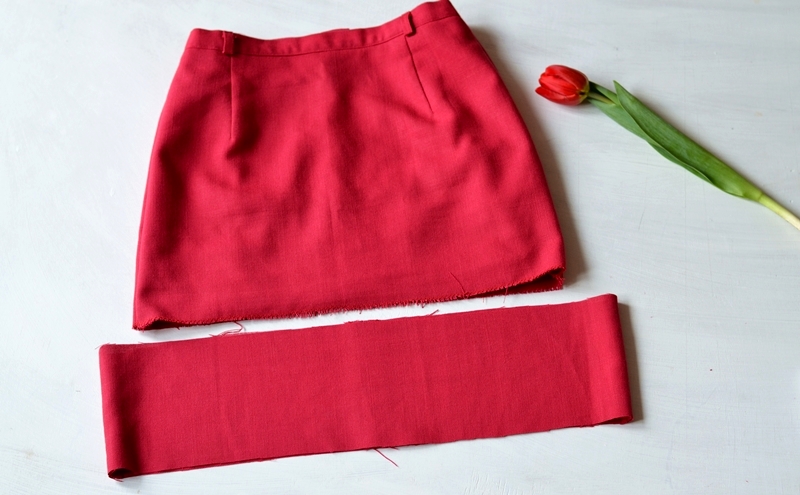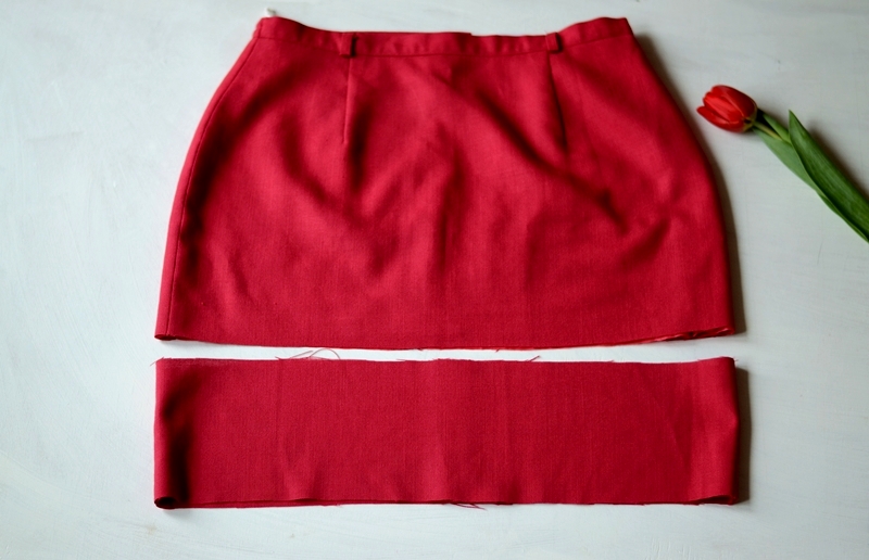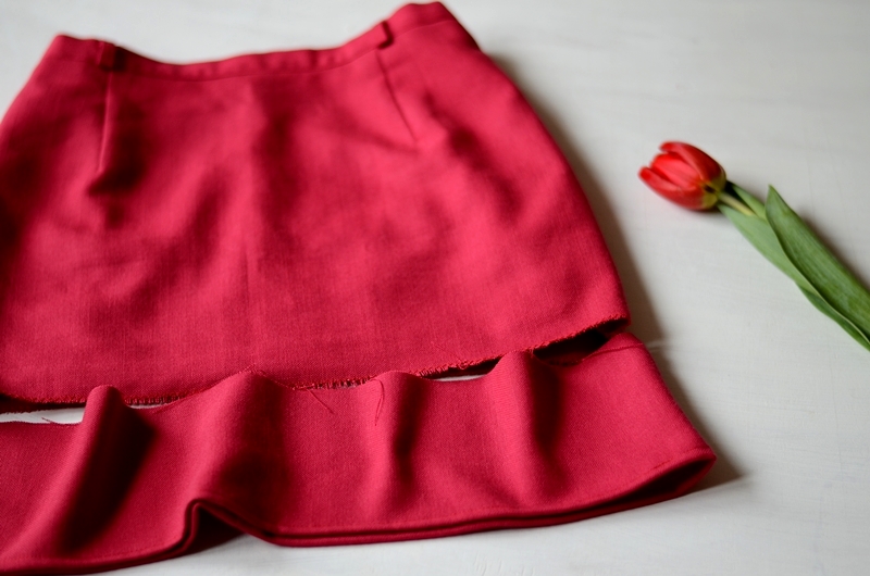 Skracamy spódniczkę (pamiętajcie, że falbanka będzie miała ok 10-13cm więc odliczcie jej długość od długości całkowitej, którą chcecie mieć)