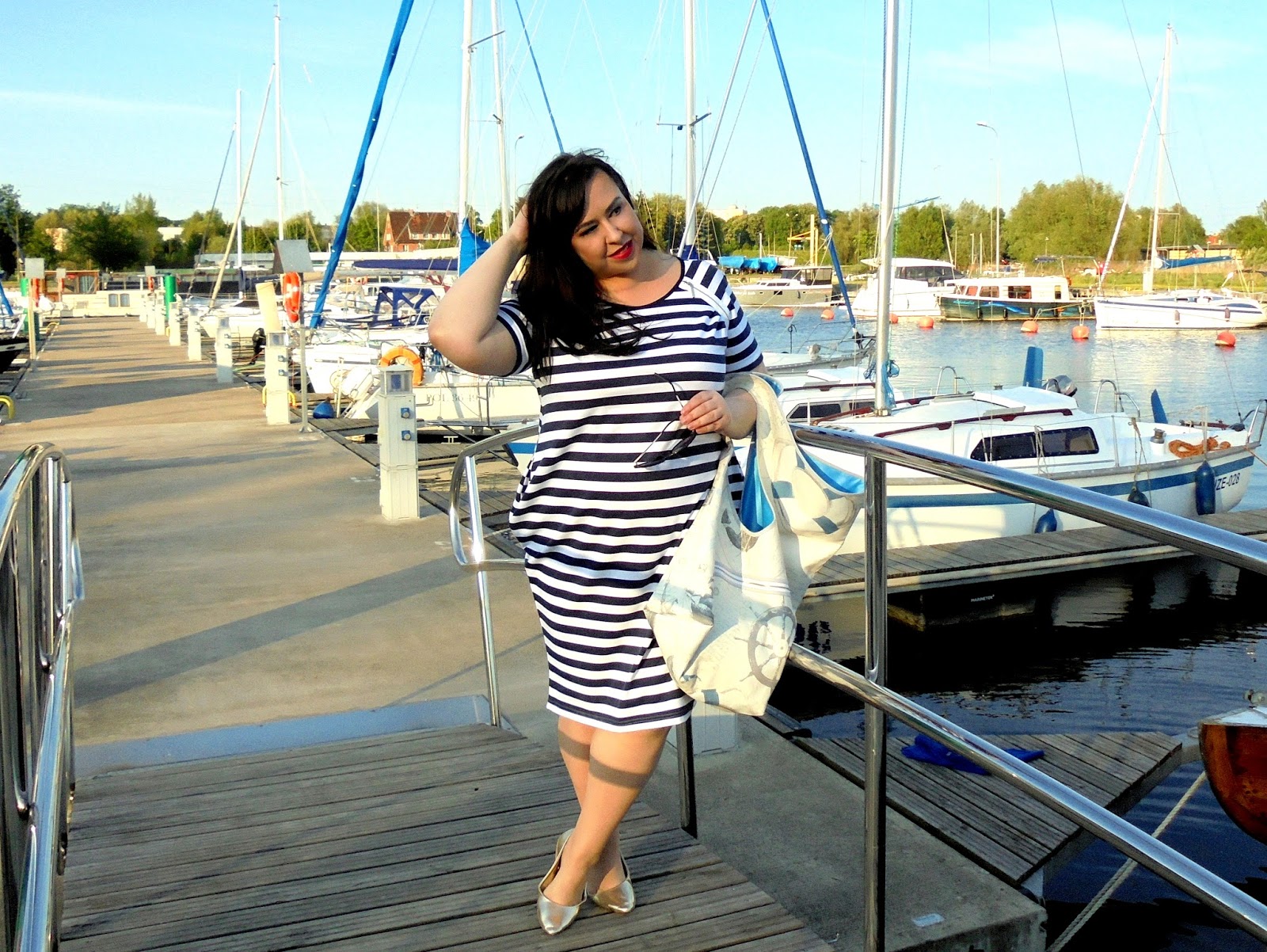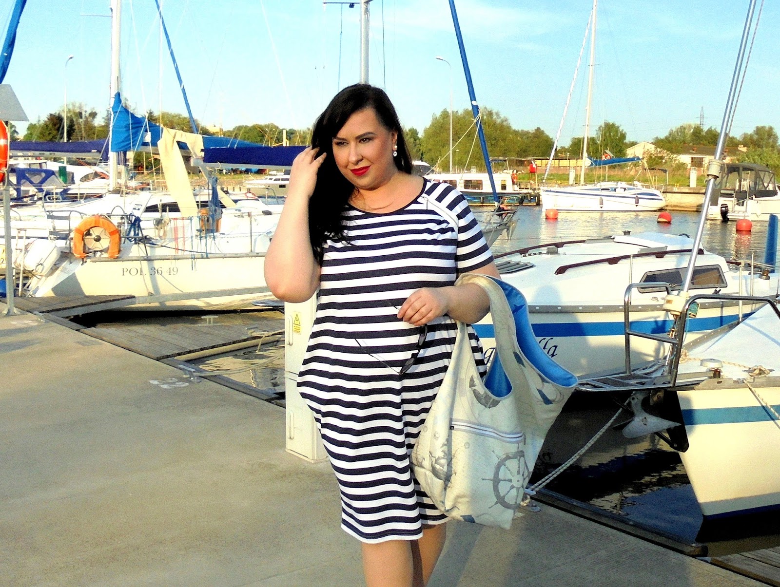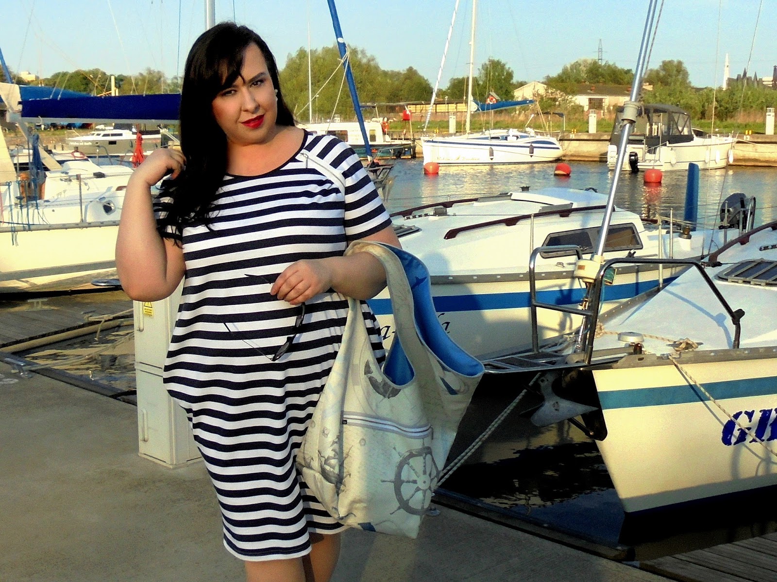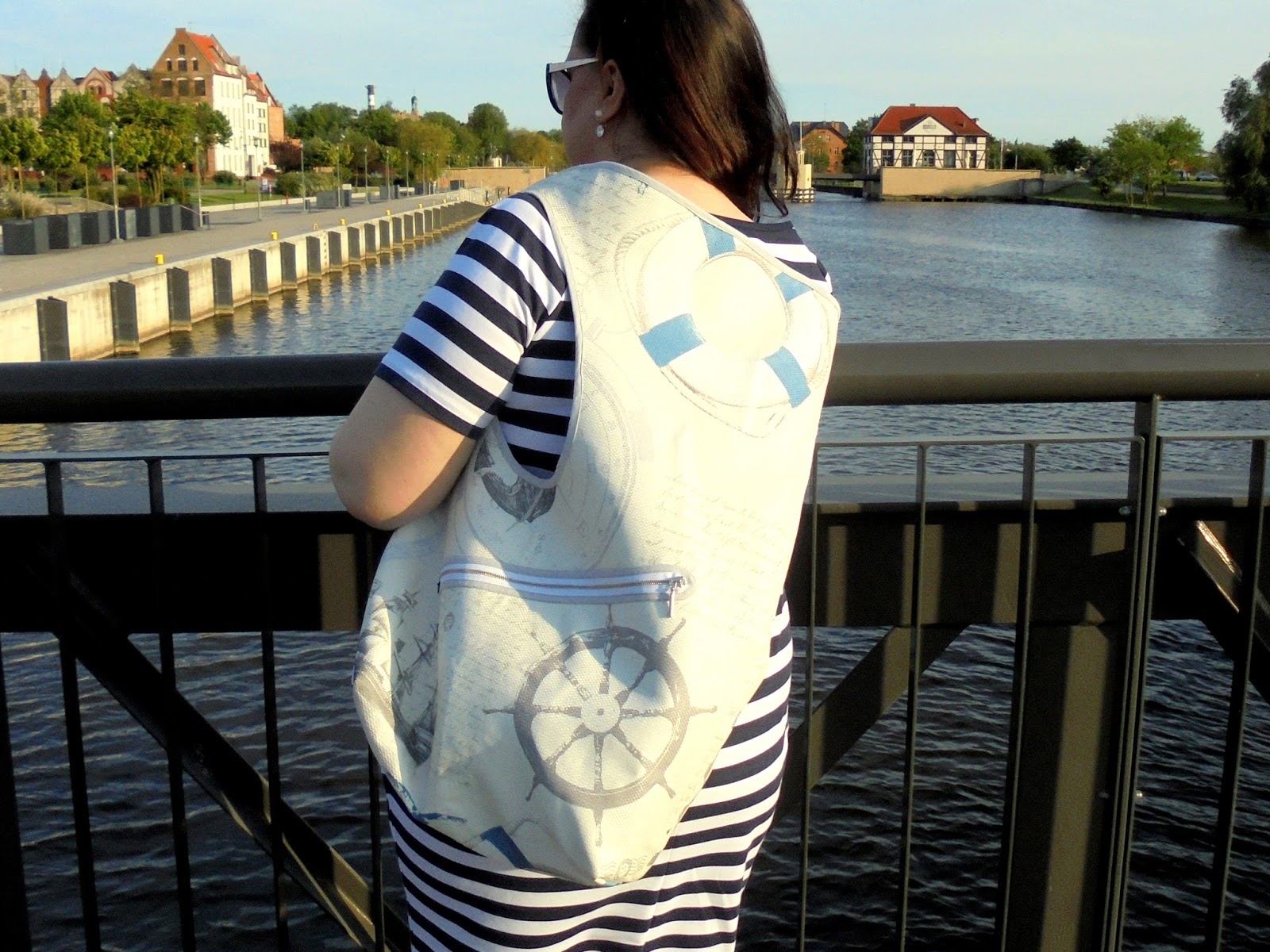 Stylizację uzupełniłam dużą torbą - również w marynarskim stylu.